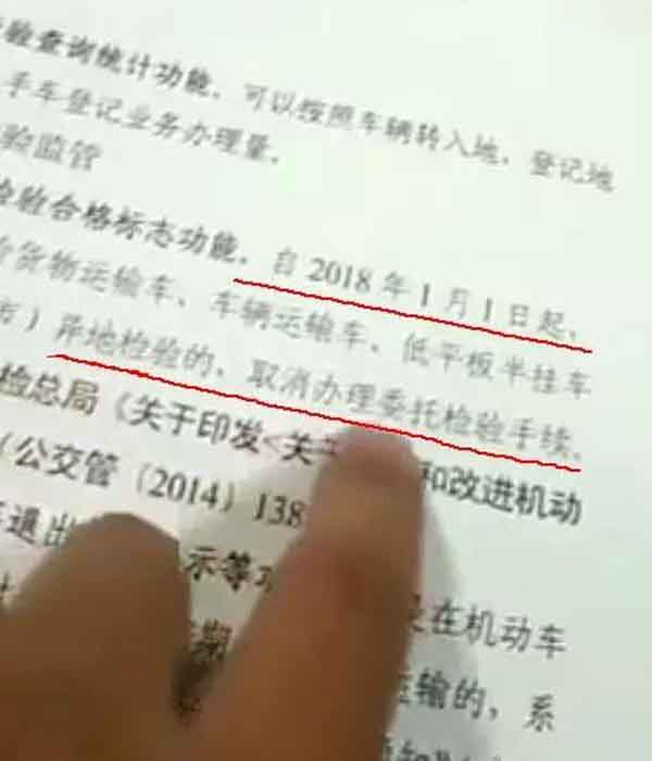 当然,在其中也特别指出了危险品运输车(流动加油车、油罐车)、车辆运输车、低平板半挂车除外,也就是说从明年元旦开始,货运车辆在跨省、市的异地年审不再需要办理委托检验的手续。
