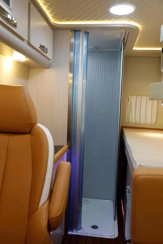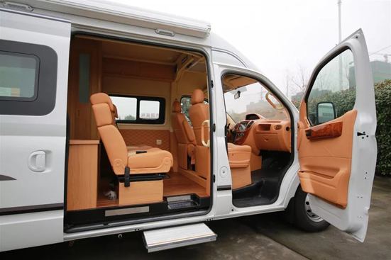 小小茶几,放上一束玫瑰,点燃心香,在宁静中享受阅读带给人的喜悦。旅途中,总有几页精彩的篇章让你欢喜和怦然心动。  精美的内饰,匠心的制作,让出行的夜晚不再寂寞孤独,车能行驶到的地方,家就在那里。作为商务旅游房车,还可一边旅游一边办公赚钱做生意沃。