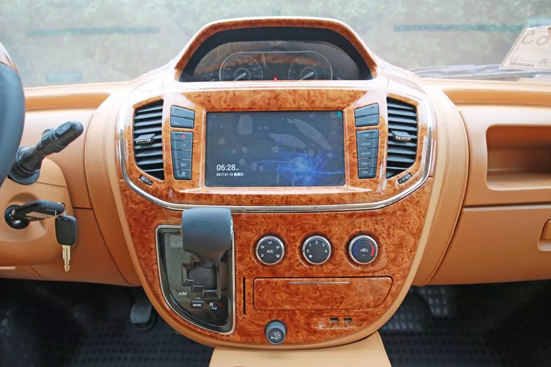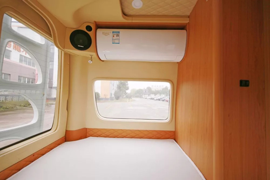 车内布局安排合理,有限的空间也显得宽阔。车内的空调处于中间位置,基本上可以满足整车的换气需求。可以在这里办公、用餐、打牌、搓麻将等等。