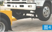 5)使用弹簧钢板托叉的时候,当托叉嵌入弹簧钢板后,应该停止提升,将防脱插销插入,对其锁定后方能继续提升。 6)完成以上工作后,提升托臂,使车轮稍许离地,检查被拖车辆是否平衡,然后选用链将十字臂与被拖车的车桥绑定,检查无误后对被拖车进行拖牵行驶。(如:图 4)