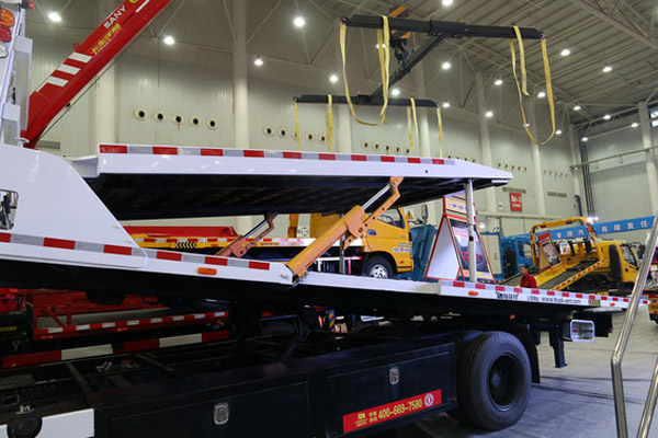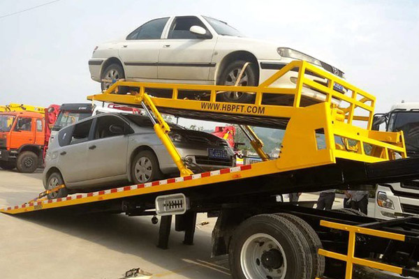 上装车辆时,上平板通过举升油缸工作和滑槽的同时配合与下平板重合,与普通清障车一样整个平板倾斜落地,车辆可以无障碍地从下平板直接过渡到上平板。上层车辆通过专用铁楔和绑带配合使用,保证行驶过程中上层车辆的安全。 上平板车辆装载完毕之后,将上平板举升,在进行下平板的车辆装载工作。装载两辆普通乘用车也不用担心车身高度超过法规要求,不会受到高速和国道的限制,无障碍通行。并且这款清障车价格也不贵,效率更高。 |