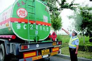 昨天上午,为防止危险化学品及长途客运重特大事故发生,丰台交通支队联合交通执法七大队、丰台运管处在京港澳高速杜家坎收费站进京方向检查站组织联合执法行动。 在联合执法现场,民警重点对路过的危化车和载客大巴进行了检查。9:50左右,一辆运输液氮的危化车被民警拦下,除了对其各项证件进行检查,还针对其车辆情况进行了询问。发现其车载灭火器腐蚀较严重,立刻进行询问是否有专人进行检查,发现灭火器字迹不清晰以后,民警建议其尽快更换灭火器,防止安全事故的发生。  随后,又有一辆危化车被拦下,与前一辆不同的是,其车身虽然贴着易燃液体运输的警示标,但是车辆并未运输任何货物。经过民警盘查,发现司机并未取得危化品运输证。丰台交通支队安监科科长刑兵说,北京市规定每日6:00-23:00时,未取得危化品运输证的危化品运输车辆不能进入高速行驶,即使未装载货物也不允许;取得危化品运输证的车辆需要按照规定线路行驶。按照违反禁令标志,执法民警对车辆处以罚款100元,扣3分的处罚。 联合执法整治将持续进行。近期重点整治对象包括,危险化学品运输车辆、长途客运车辆超速、超载、疲劳驾驶,违法停车、不按规定设置警示标志;危险化学品运输车辆进入限制通行区域,不按规定时间、路线、速度行驶;剧毒化学品运输车辆无证运输、不按运输通行证注明内容运输、未随身携带运输通行证明、不配备押运人员;车辆未悬挂或喷涂符合国家标准的警告标志等违法行为。