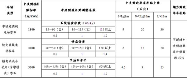 一、新能源客车补贴标准和技术要求
