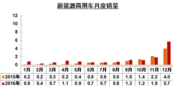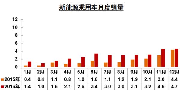 |   1月12日,中国汽车工业协会对外发布的数据显示, 2016年新能源汽车生产51.7万辆,销售50.7万辆,比上年同期分别增长51.7%和53%。  由于受到“骗补”风波、补贴新政迟迟未出台等因素影响,2016年新能源汽车增长速度相对放缓。2016年新能源汽车生产51.7万辆,销售50.7万辆,比上年同期分别增长51.7%和53%。其中纯电动汽车产销分别完成41.7万辆和40.9万辆,比上年同期分别增长63.9%和65.1%;插电式混合动力汽车产销分别完成9.9万辆和9.8万辆,比上年同期分别增长15.7%和17.1%。