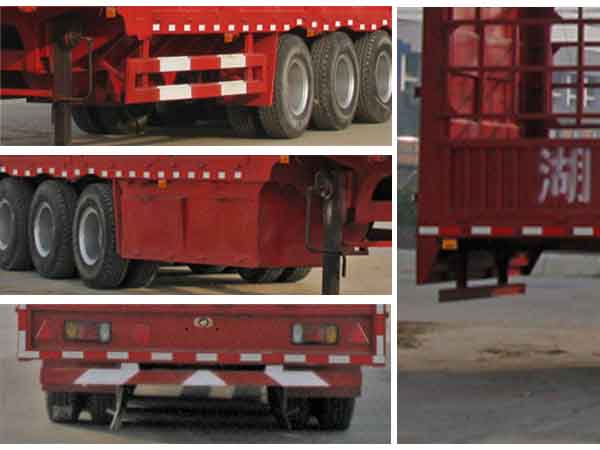 | | CLW9400CXY型仓栅式半挂车   主要技术参数 |  | 产品名称: | 仓栅式半挂车 | 外型尺寸: | 13000×2500×3800,3600,3400,3200(mm) |  | 底盘型号: |  | 货厢尺寸: | 12850×2340×600(mm) |  | 总质量: | 40000(Kg) | 接近/离去角: | -/15(°) |  | 额定质量: | 33000(Kg) | 前悬后悬: | -/2550(mm) |  | 整备质量: | 7000(Kg) | 最高车速: | (km/h) |  | 发动机 | 发动机生产企业 | 排量(ml) | 功率(kw) |  | 排放标准: |  |  | 轴数: | 3 | 前轮距: | -(mm) |  | 轴距: | 6480+1310+1310 | 后轮距: | 1840/1840/1840(mm) |  | 轮胎数: | 12 | 轮胎规格: | 11.00-20 12PR,11.00R20 12PR, |  | 燃料种类: |  | 弹簧片数: | -/8/8/8,-/10/10/10 |  | 轴荷: | -/24000(三轴组) | 驾驶室乘人数: |  |  | 整车备注: | 整车高度3800mm,3600mm,3400mm,3200mm对应的货厢底板到仓栅顶部高度分别为2400mm,2200mm,2000mm,1800mm。防护材料:Q235碳钢,连接方式:左右侧面及后下部防护均采用焊接连接,后部防护断面尺寸(mm):120×50×5,后部防护离地高度(mm):450。ABS生产厂家:瀚德国际贸易(上海)有限公司,ABS型号:4S/3M。 |  | 专用性能: |  |  | 多方位图: |