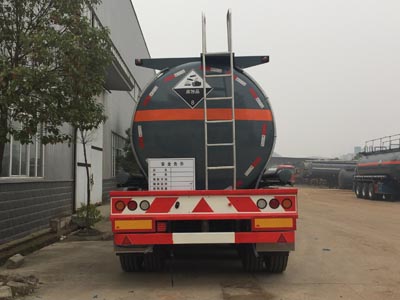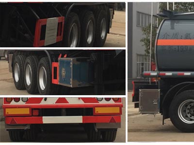 | | 19.9方AT型8类腐蚀性物品罐式运输半挂车   主要技术参数 |  | 产品名称: | 腐蚀性物品罐式运输半挂车 | 外型尺寸: | 9900×2500×3650(mm) |  | 底盘型号: |  | 货厢尺寸: | ××(mm) |  | 总质量: | 40000(Kg) | 接近/离去角: | -/19(°) |  | 额定质量: | 33000(Kg) | 前悬/后悬: | -/1450(mm) |  | 整备质量: | 7000(Kg) | 最高车速: | (km/h) |  | 轴数: | 3 | 前轮距: | (mm) |  | 轴距: | 4600+1310+1310 | 后轮距: | 1840/1840/1840(mm) |  | 轮胎数: | 12 | 轮胎规格: | 11.00R20 12PR,12R22.5 12PR |  | 燃料种类: |  | 弹簧片数: | -/8/8/8,-/4/4/4 |  | 轴荷: | -/24000(三轴组) | 驾驶室乘人数: |  |  | 整车备注: | 采用适用于牵引危险品半挂车的牵引车。选装不同样式的挡泥板,可选工具箱位置。运输类项号:8,罐体有效容积:19.9立方米,罐体外形尺寸(长×直径)(mm):前半部为3200×1700,后半部为6200x1900。防护材料:Q235A碳钢,连接方式:左右侧面及后下部防护均采用焊接连接,后部防护断面尺寸(mm):140×50,后部防护离地高度(mm):500。ABS生产厂家/型号:广州市科密汽车制动技术开发有限公司/CM2XL-4S/2K(4S/2M),梁山顺安达汽车科技有限公司/SAD-ABS4S/2M,梁山海纳电子科技发展有限公司/HNABS-4S/2M。危险货物运输车辆的类型(AT型车辆)。 |  | 专用性能: |  |  | 多方位图: |