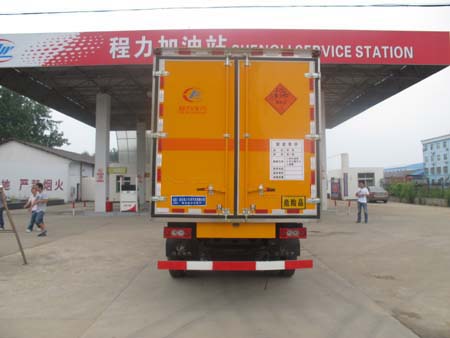 |  | 排放标准: | GB17691-2005国V,GB3847-2005 |  | 轴数: | 2 | 前轮距: | 1710,1740(mm) |  | 轴距: | 3800 | 后轮距: | 1630(mm) |  | 轮胎数: | 6 | 轮胎规格: | 8.25-20 16PR, 8.25R20 16PR, 9.00-20 14PR, 9.00R20 14PR |  | 燃料种类: | 柴油 | 弹簧片数: | 9/11+7 |  | 轴荷: | 4200/7795 | 驾驶室乘人数: | 3 |  | 整车备注: | 选装右侧箱体不开门,厢体顶部封闭,不可开启:运输品名:黑火药,炸药,电引爆雷管, 爆破炸药,烟花爆竹等,类项号:1.1B,1.1D,1.1G,1.2G,1.3G,1.4G 等; 防护材料:Q235A碳钢,连接方式:左右侧面及后下部防护均采用焊接连接,后部防护断面尺寸(mm):100×50,后部防护离地高度(mm):510,发动机型号ISF3.8s5154,对应油耗值分别为22.81。该车安装带有卫星定位功能的行驶记录仪。仅采用前盘制动器和安装ABS以及前置消声器的底盘。采用子午线轮胎。安装限速装置,限速80km/h。ABS型号:44600XXXX0;ABS生产企业:威伯科汽车控制系统(中国)有限公司。 |  | 专用性能: | 我公司专业生产东风系列、江铃系列、江淮系列、北汽系列、庆铃系列、解放系列等爆破器材运输车,厢体为双层金属骨架结构,外部为冷扎钢板,内壁采用铝合金板蒙面,夹层为隔热阻燃材料填充。设置对开门,如需安装抗暴容器则增开侧门,侧壁设有防雨功能自然通风窗口,以使厢内外空气流动,厢体内部做防静电处理,厢体底部与厢内前部铺有阻燃导静电胶板,并与底盘等电位连接,通过车辆后端的导静电装置与大地相连,可防止静电火花的产生和车辆静电及时释放,提高车辆的安全性。厢体内部前面和侧面装有固定拉环,与捆绑带使用捆绑货物以避免移动确保安全。 |  | 多方位图: |