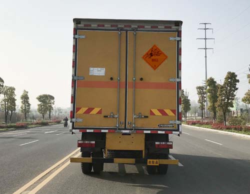 | | 东风D9厢长6.3米爆破器材运输车   主要技术参数 底盘配置:采用东风D9多利卡EQ1181LJ9BDEWXP底盘,排半可前翻驾驶室,ISB180东风康明斯发动机有限公司180马力国五柴油发动机,带ABS、盘式制动、限速、排气管前置、方向助力、空调 、电动玻璃,4700轴距,1000原厂钢丝胎,外型尺寸8700×2550×3850,额定载重9990。厢体配置:厢体尺寸6300×2380×2400,厢体釆用可产生静电屏蔽效应的冷扎钢板,中间附以阻燃泡沫,内饰铝板。厢体右侧及后尾部开双侧门,厢内安装固定运载物的卧环或卡槽,厢体内安装防燃烟雾报警器,门上安装防盗报警器,前置防撞防静电胶皮,底部为防爆钢板上垫防静电胶皮,厢体颜色为黄色(可根据用户要求变换厢体颜色),安装有前后左右4个摄像头实时全程监控、32G内存卡抽出可在手机或电脑上播放),倒车影像。
