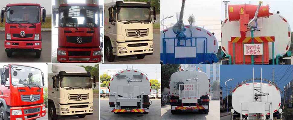 |  | 排放标准: | GB17691-2005国Ⅴ,GB3847-2005 |  | 轴数: | 2 | 前轮距: | 1910,1760,1940,1960,1980,2040(mm) |  | 轴距: | 3650,3800,3950,4200,4500,4700,5100,5600 | 后轮距: | 1860,1690,1750,1800(mm) |  | 轮胎数: | 6 | 轮胎规格: | 10.00-20 18PR,10.00R20 18PR,11.00R20 18PR,11.00-20 16PR,12R22.5 16PR,12R22.5 18PR,295/80R22.5 16PR,295/80R22.5 18PR |  | 燃料种类: | 柴油 | 弹簧片数: | 9/10+8,9/11+8,8/10+8,8/11+8,3/4+3 |  | 轴荷: | 6500/11500 | 驾驶室乘人数: | 3 |  | 整车备注: | 水罐有效容积:11立方米,介质:水,密度:1.0吨/立方米,水罐外形尺寸(长×长轴×短轴)(mm):5200×2260×1400,5200×2250×1390,4400×2300×1420.随底盘选装驾驶室.选装椭圆罐形,选装降尘喷头.选装后喷雾机.侧后防护采用Q235材质焊接连接,后部防护断面尺寸(mm):50×120,后部防护离地高度(mm):480.ABS型号为3631010-C2000,生产厂家为东科克诺尔商用车制动系统(十堰)有限公司. |  | 专用性能: | 公司专业生产东风、福田、解放等系列各类洒水车。用户可自带底盘,我厂提供上装部件的生产改装。 洒水车前冲(喷)后洒,带侧喷,罐体后带工作平台,平台上安装绿化洒水炮,洒水炮可全方位旋转,可连续调成直冲状、大雨、小雨、毛毛雨,带安全护栏,配备全国质量评比第一名的杭州威龙大功率专用洒水泵,泵可自吸自排,安装过滤网,带消防接口,可通过消防栓进水,带自流阀,随车选装20米绿化卷盘,可喷洒农药,罐体金属漆。
