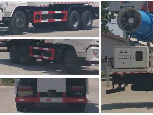 | | 东风后双桥15方多功能抑尘车   主要技术参数 |  | 产品名称: | 多功能抑尘车 | 外型尺寸: | 10970,10770,10570,10370×2500×3850(mm) |  | 底盘型号: | EQ1258VFJ2 | 货厢尺寸: | ××(mm) |  | 总质量: | 24900(Kg) | 接近/离去角: | 17/8(°) |  | 额定质量: | 11805(Kg) | 前悬/后悬: | 1450/3470,1250/3470(mm) |  | 整备质量: | 12900(Kg) | 最高车速: | 90(km/h) |  | 发动机 | 发动机生产企业 | 排量(ml) | 功率(kw) |  | YC6A240-50 ISB210 50