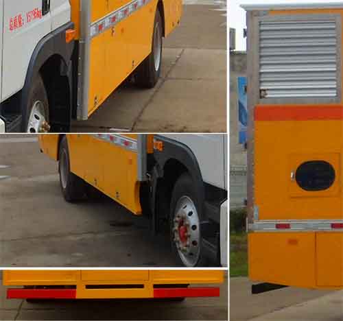 |  | 排放标准: | GB17691-2005国Ⅴ,GB3847-2005 |  | 轴数: | 2 | 前轮距: | 1858,1949,1923,1891(mm) |  | 轴距: | 3950,4500,4700,5200,5600 | 后轮距: | 1806,1865(mm) |  | 轮胎数: | 6 | 轮胎规格: | 9.00R20,10.00R20 |  | 燃料种类: | 柴油 | 弹簧片数: | 8/10+7 |  | 轴荷: | 5600/10400 | 驾驶室乘人数: | 3 |  | 整车备注: | 厢体顶部封闭,不可开启;可根据客户要求:选装升降照明灯,场地照明LED灯,前部爬梯,车身两侧选装不同数量及位置的卷帘门、工作门、百叶窗,选装后部液压尾板;液压尾板收起状态水平长度 110mm;车身外观可根据客户或行业要求喷涂或粘贴宣传文件、标识等,允许局部结构外观有变化,车辆颜色和文字喷涂位置可变化。防护材料Q235钢,侧防护为裙板式结构,后防护断面尺寸(mm):50×110,后防护下缘离地高度520mm。ABS系统生产厂家,型号 :焦作博瑞克控制技术有限公司,J ABS.。 |  | 专用性能: | 我公司设计生产的应急救险车的配套设备全部具有结构简约、体积小、重量轻的优势,从而具有灵活、机动的特性。是电力、移动、联通、电信、市政公司必备的重要运输与作业装备之一。 |  | 多方位图: |