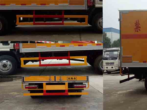 |  | 排放标准: | GB17691-2005国Ⅴ,GB3847-2005 |  | 轴数: | 2 | 前轮距: | 1506,1580,1590(mm) |  | 轴距: | 3100,3300,3650 | 后轮距: | 1500,1530(mm) |  | 轮胎数: | 6 | 轮胎规格: | 7.00-16LT 8PR,7.00R16LT 8PR,7.50-16 6PR,7.50R16 6PR |  | 燃料种类: | 柴油 | 弹簧片数: | 9/9+5,8/9+5,6/6+5 |  | 轴荷: | 1800/2695 | 驾驶室乘人数: | 2,3 |  | 整车备注: | 该车适用于运输危险品。选装驾驶室。厢体顶部封闭,不可开启。选装侧门型式及位置,厢体颜色可变化,文字喷涂位置可变化。运输介质:单独包装的氨溶液(氨水)或甲醛溶液或除锈磷化液(除锈磷化处理剂)或电池,电池液或木馏油。类项号:8类。仅采用底盘子午线轮胎和带ABS的底盘,该车前轮安装盘式制动器,前置排气管,装配限速装置,限速80km/h。安装带有卫星定位功能的行驶记录仪。侧防护和后防护装置材料材质为Q235A碳钢,侧防护与箱体底部焊接连接,后防护装置与车架采用焊接连接。后防护截面尺寸(mm):100×50,离地高度为500mm。发动机CY4BK451、YC4FA115-50、4DX23-120E5分别对应的油耗值为:12.3、12.3、12.3。当整车长度为5995mm时,轴距3650mm、3300mm、3100mm与后悬1275mm、1625mm、1825mm一一对应.ABS型号为3631010-C2000,生产厂家为东科克诺尔商用车制动系统(十堰)有限公司. |  | 专用性能: | 我厂生产的腐蚀性物品厢式运输车厢体部分为双层金属骨架结构,外部为冷扎钢板,内壁采用铝合金板蒙面,夹层为隔热阻燃材料填充。设置对开门,侧壁设有防雨功能及自然通风窗口,以使厢内外空气流动,厢体内部做防静电处理,厢体底部与厢内前部铺有阻燃导静电胶板,并与底盘等电位连接,通过车辆后端的导静电装置与大地相连,可防止静电火花的产生和车辆静电及时释放,提高易燃气体厢式运输车的安全性。厢体内部前面和侧面装有固定拉环,与捆绑带使用捆绑货物以避免移动。装配有防漏、防盗报警器以确保车辆在行驶过程中整车始终处于受控状态。 |  | 多方位图: |