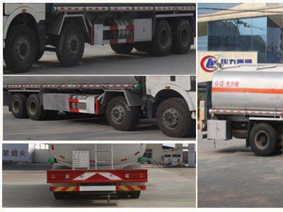 |  | 排放标准: | GB17691-2005国Ⅴ,GB3847-2005 |  | 轴数: | 4 | 前轮距: | 1950/1950(mm) |  | 轴距: | 1950+4550+1350,1950+3550+1350 | 后轮距: | 1847/1847,1878/1878(mm) |  | 轮胎数: | 12 | 轮胎规格: | 11.00R20 16PR,11.00-20 16PR,10.00R20,10.00-20,11R22.5 ,295/80R22.5 ,12R22.5 ,11.00R20 18PR |  | 燃料种类: | 柴油 | 弹簧片数: | 10/10/11,3/3/11,3/3/4,9/9/10,3/3/10 |  | 轴荷: | 6500/6500/18000(二轴组) | 驾驶室乘人数: | 3,2 |  | 整车备注: | 1,该车型为非危化品运输车。2,罐体有效容积:26.6立方米,罐体外形尺寸(长×长轴×短轴)(mm):9000×2480×1750。3,侧,后防护装置材料:Q235A碳钢,焊接,后防护断面尺寸(宽×高)(mm)50×135,离地高470mm;4,安装具有卫星定位功能的行驶记录仪,ABS系统生产厂为WABCO,型号为446 004 320 0。5,车辆颜色可选,文字喷涂位置可变化。仅选用底盘轮胎型号(11.00R20 18PR,10.00R20 18PR,295/80R22.5 18PR,12R22.5 18PR)。 |  | 专用性能: | 我厂生产的供液车主要由汽车底盘系统、罐体系统、装卸管路及控制系统和安全保护系统等组成。是油、气田固井施工时提供液源的非危化品专用汽车,主要通过压裂管汇车或分配器向水泥车提供洗井液,也可用于油井压裂时的供液和其他供水作业。 |  | 多方位图: |