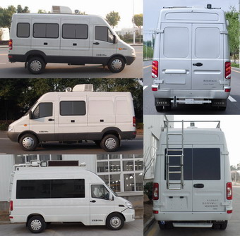|  | 排放标准: | GB17691-2005国Ⅴ,GB3847-2005 |  | 轴数: | 2 | 前轮距: | 1695(mm) |  | 轴距: | 3310 | 后轮距: | 1540(mm) |  | 轮胎数: | 6 | 轮胎规格: | 6.50R16LT |  | 燃料种类: | 柴油 | 弹簧片数: | -/6,-/3 |  | 轴荷: | 1620/2660 | 驾驶室乘人数: | 2 |  | 整车备注: | 车顶选装工作平台,防护围栏及场地照明灯,选装顶置空调,升降照明设备,LED屏,换气扇,喇叭等。选装顶置空调时高3150mm,中顶选装时高2890mm;选装升降照明设备时高3070mm,中顶选装时高2820mm;选装平台及防护围栏时高2980mm,中顶选装时高2730mm;无以上选装时高2790mm,中顶无选装时高2540mm;随原整车选装后踏板时长5580mm;选装顶置空调,升降照明设备及较多检测设备时整备质量3280kg,选装车顶工作平台,防护围栏时整备质量3080kg;车顶无选装,车内选装工作台,仪器柜及相关精密检测仪器时整备质量2900kg。选装侧,后车窗部分或全部盲窗。选装两侧车窗翼开启式活动门,选装小发电机舱门或工具舱门。选装后部爬梯等。可根据行业或用户需求喷涂粘贴车身颜色及外部标识。随原整车选装ABS,中顶,侧拉门,后上车踏板,前围外形及灯具等。选装的ABS系统控制器型号:BOSCH ABS8,生产企业:博世汽车部件(苏州)有限公司。该车发动机最大净功率分别为88kW,105kW,仅选用6.50R16LT 10PR轮胎。 |  | 专用性能: |  |  | 多方位图: |