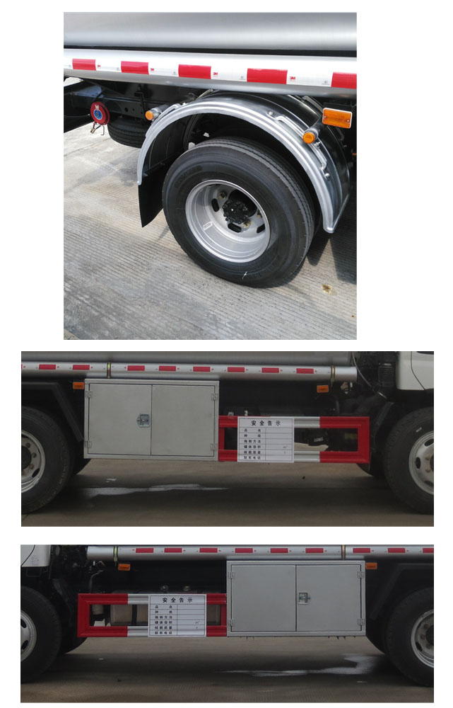 |  | 排放标准: | GB17691-2005国V,GB3847-2005 |  | 轴数: | 2 | 前轮距: | 1710,1740(mm) |  | 轴距: | 3800 | 后轮距: | 1630(mm) |  | 轮胎数: | 6 | 轮胎规格: | 8.25-20 16PR, 8.25R20 16PR, 9.00-20 14PR, 9.00R20 14PR |  | 燃料种类: | 柴油 | 弹簧片数: | 9/11+7 |  | 轴荷: | 4200/7795 | 驾驶室乘人数: | 3 |  | 整车备注: | 1,该车适用于危险品运输,运送危险货物车辆类型为:FL型。装配限速装置,限速80km/h。运输介质:柴油/密度830千克/立方米,类项号:3,罐体有效容积8.0立方米,罐体外形尺寸(长×长轴×短轴) (mm):4800×1950×1280;运输介质:汽油/密度700千克/立方米,类项号:3,罐体有效容积9.5立方米,罐体外形尺寸 (长×长轴×短轴) (mm):4800×2030×1460。加油机装置可装在车架左侧或右侧,安装位置前后可变化。选装椭圆罐体;选装无上走道;文字喷涂位置可变化。2,侧防护左右对称采用冷弯型钢/Q235,螺栓连接。后防护采用冷弯型钢/Q235,焊接,截面高120mm,截面宽50mm,下边缘离地高500mm。加油机型号及生产企业:BL1111Z/珠海市贝林加油设备有限公司中山分公司,HS1812B/托肯恒山科技(广州)有限公司,SKES-1112/恒和嘉华科技有限公司(上海伯莱机械有限公司),SK20QF-111A,SK20QF-222A/郑州三金石油设备制造有限公司,CS20D1110F/正星科技有限公司,JSK-70B1121CZ,JSK-70B1121C,JSK45B1121C/稳恩佳力佳(北京)石油化工设备有限公司, ZH6444/佛山市众泽机电科技有限公司。3,选装弧形挡泥板,选装单排带卧铺,选装前围及前部灯具;ABS型号/生产厂家:44600XXXX0/威伯科汽车控制系统(中国)有限公司。选用ISF3.8s5154发动机。 |  | 专用性能: | 本公司改装生产的油罐车均采用国内成熟的原装底盘进行改装,用户也可自带底盘(必须与公告底盘型号一致),我厂提供上装部件的生产改装。油罐车均可设计成化工车。油罐车均可配备电脑加油机。油罐车宽范围的上户吨位选择,以满足用户需求。。 罐体材质:碳钢、不锈钢、钢衬塑、玻璃钢、全塑罐(聚乙烯)。罐型:方圆形、椭圆形、圆形。油罐车罐体内设多道防波隔板。采用高压气体试漏检测,使罐体具有强度高,重心稳,车辆运载安全平稳等特点。油泵:自吸泵、齿轮泵、化工泵、不锈钢泵。油表:单计数、双计数、税控加油机。