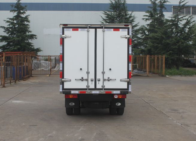 | | 蓝牌福田驭菱后双轮厢长2.9米冷藏车   主要技术参数 底盘配置:采用福田驭菱后双轮底盘、锐展(铜陵)科技有限公司TNN4G15B国五汽油发动机111.5马力、5档变速箱、175R14LT 8PR轮胎、2566轴距。厢体基本配置:厢体采用FRP即玻璃钢(特点:质轻而硬、不导电、机械强度高、耐腐蚀),中间采用发泡高密度聚氨酯保温材料。产品重量轻,漏热率(导热系数)低,强度高,保温效果好,隔热性能达到我国A级标准。厢体厚度8CM,厢体容积5.58m³,厢体全部为不锈钢锁件,铝合金包角,厢体地板选装底板通风槽。冷藏机组采用国产或进口,配-5(至-18)度制冷机组。全国联保,全国各地均有保修点,冷机故障可在车辆所在地保修。其它按标配生产或客户特别需求生产(加装温湿度记录仪3500元、加装通风槽2500元,另计)。