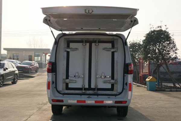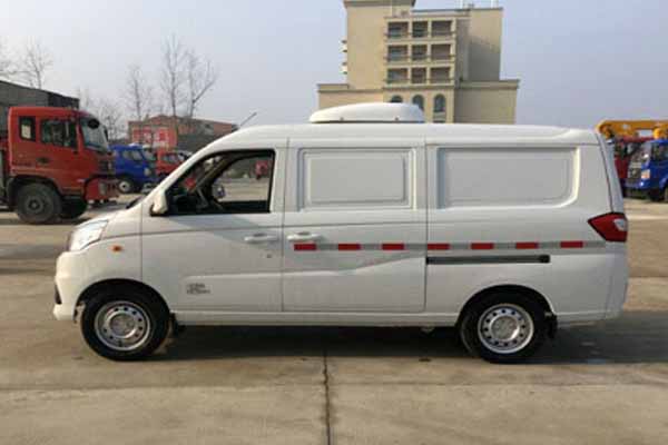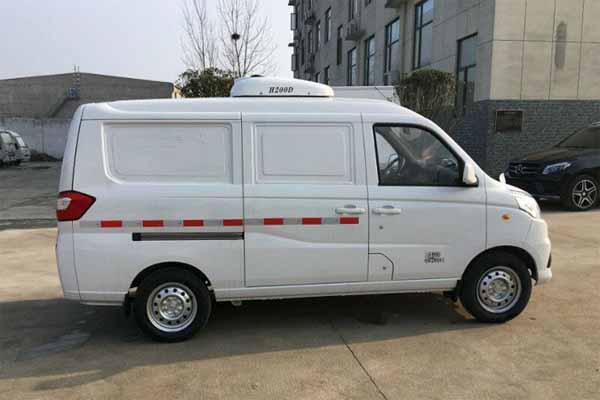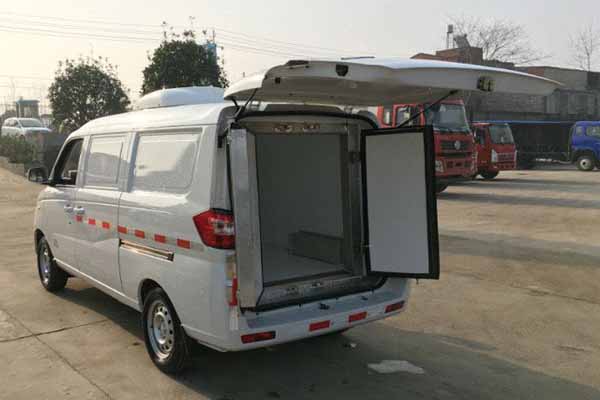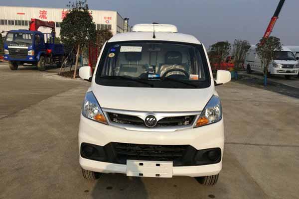 | | 福田V5面包冷藏车   主要技术参数 底盘配置:采用福田V5面包式冷藏车、北汽福田汽车股份有限公司4W12M1国五汽油发动机85马力、5档变速箱、动力转向、驾驶室空调、175/70R14LT轮胎、2700轴距。上蓝牌(一线城市及北京可上牌照),整车尺寸4200×1680×2035(mm),箱体尺寸1785×1210×1100(mm),此车厢体内制冷机组标准配置为-5度或-15度,主要用于用于运输新鲜血液,疫苗,是医院、医药公司、快运公司的最佳选择。厢体基本配置:厢体采用FRP即玻璃钢(特点:质轻而硬、不导电、机械强度高、耐腐蚀),中间采用发泡高密度聚氨酯保温材料。产品重量轻,漏热率(导热系数)低,强度高。箱体具有保温性能好、环保节能、耐腐蚀、质量轻、寿命长、抗老化,耐复杂气候等优点,其保温性能达到国际A级标准。