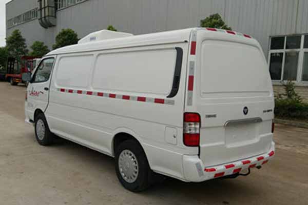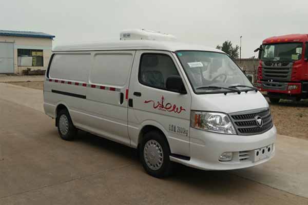 | | 福田风景面包冷藏车   主要技术参数 底盘配置:采用福田风景面包式冷藏车、北汽福田汽车股份有限公司4Q20M1国五汽油发动机129马力、5档变速箱、动力转向、驾驶室空调、185R14C或195/70R15轮胎、2890轴距。上蓝牌(一线城市及北京可上牌照),整车尺寸5320×1690×2400,2225(mm),箱体尺寸2870×1370×1230(mm),此车厢体内制冷机组标准配置为-5度或-15度,主要用于用于运输新鲜血液,疫苗,是医院、医药公司、快运公司的最佳选择。厢体基本配置:厢体采用FRP即玻璃钢(特点:质轻而硬、不导电、机械强度高、耐腐蚀),中间采用发泡高密度聚氨酯保温材料。产品重量轻,漏热率(导热系数)低,强度高。箱体具有保温性能好、环保节能、耐腐蚀、质量轻、寿命长、抗老化,耐复杂气候等优点,其保温性能达到国际A级标准。