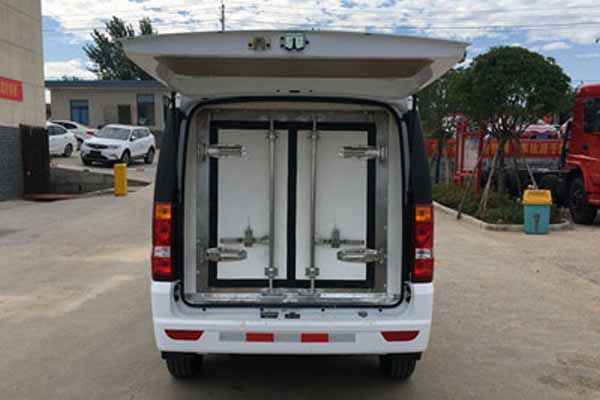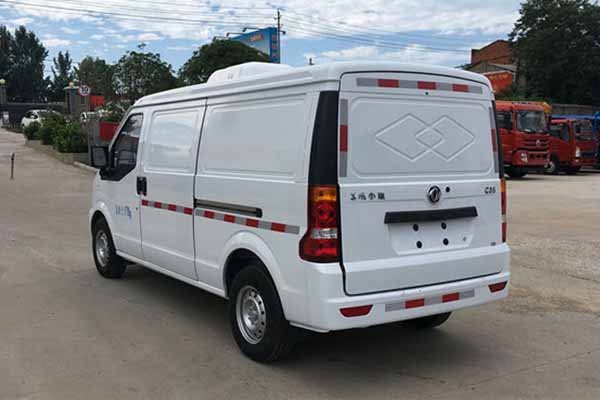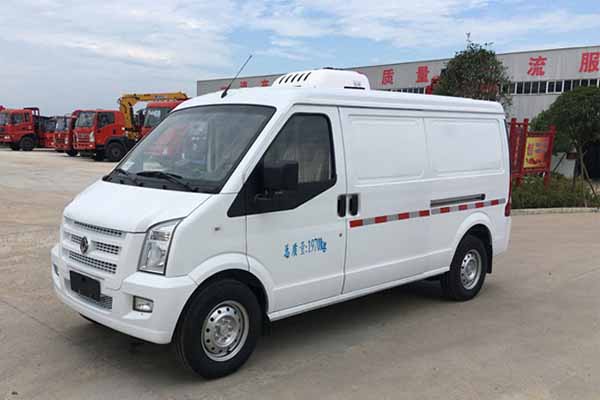 | | 东风小康面包冷藏车   主要技术参数 底盘配置:采用东风小康面包式冷藏车、重庆小康动力有限公司DK15-10国五汽油发动机112马力、5档变速箱、动力转向、驾驶室空调、185R14LT轮胎、3050轴距。上蓝牌(一线城市及北京可上牌照),整车尺寸4500×1680×2240(mm),箱体尺寸2250×1520×1500(mm),此车厢体内制冷机组标准配置为-5度或-15度,主要用于用于运输新鲜血液,疫苗,是医院、医药公司、快运公司的最佳选择。厢体基本配置:厢体采用FRP即玻璃钢(特点:质轻而硬、不导电、机械强度高、耐腐蚀),中间采用发泡高密度聚氨酯保温材料。产品重量轻,漏热率(导热系数)低,强度高。箱体具有保温性能好、环保节能、耐腐蚀、质量轻、寿命长、抗老化,耐复杂气候等优点,其保温性能达到国际A级标准。