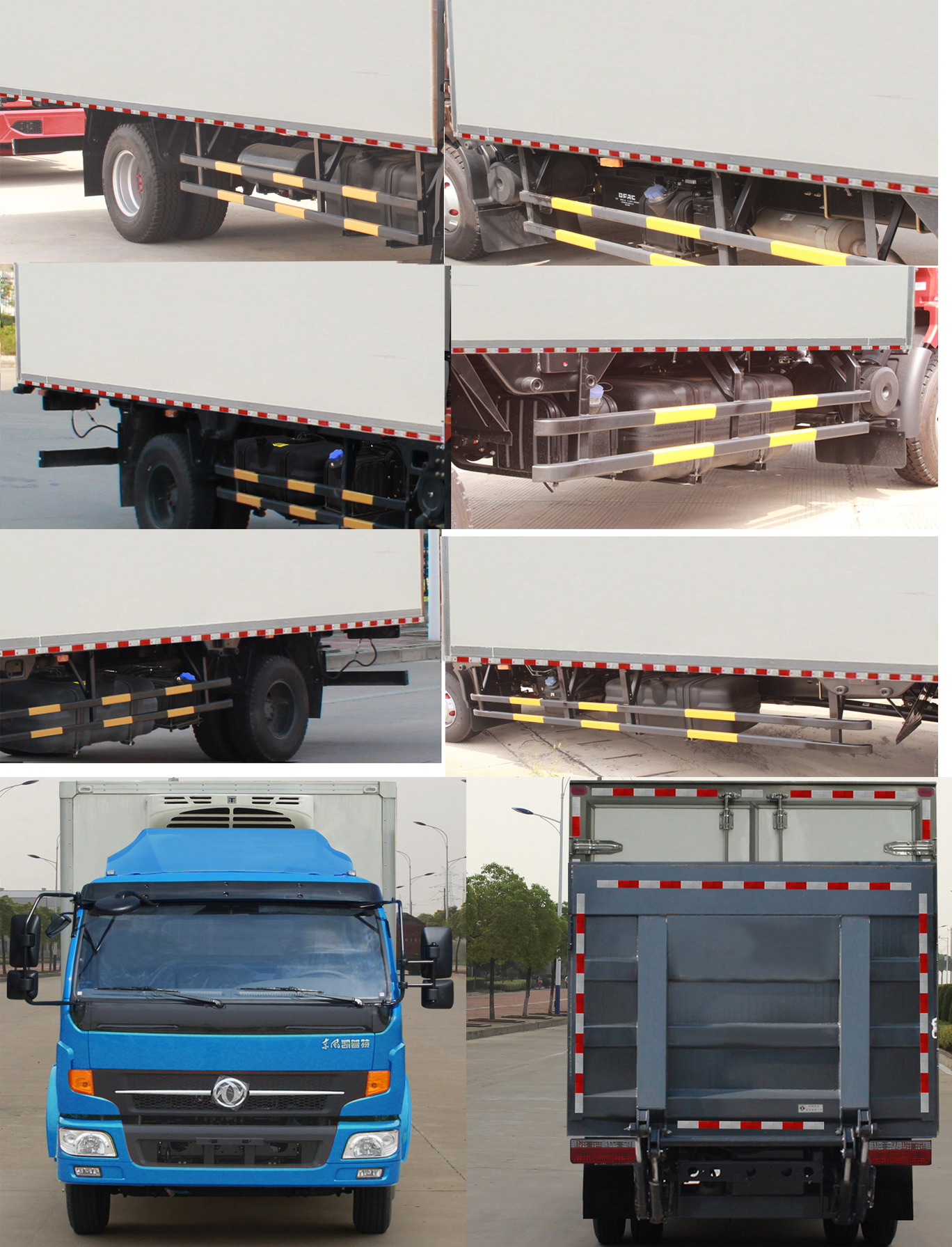 | | 东风凯普特厢长5.15米冷藏车   主要技术参数 底盘配置:采用东风凯普特驾驶室、东风朝阳朝柴动力有限公司CY4SK251国五柴油发动机156马力、7.50R16轮胎、3800轴距,六档变速箱。整车尺寸6995×2450×3400(mm),箱体尺寸5150×2215×2250(mm),箱体容积25.6立方米,此车厢体内制冷机组标准配置为-5度或-15度,主要用于冷冻食品、饮料、药品、疫苗、电子产品等各种需要恒温、冷藏、冷冻产品的配送运输。装卸货方便,灵活快捷,省油低排放,价格实惠。厢体基本配置:东风凯普特厢长5.15米冷藏车内外壁板选用国内优质的机制2.2mm玻璃钢;中间保温材料选用厚进口聚氨酯;厢体厚度80mm,门厚度80mm;底板上下玻璃板,中间进口聚氨酯;厢体周边2.5mm铝合金包边,不锈钢包角,不锈钢门锁,防碰胶皮4块,不锈钢门框, 不锈钢合页,箱内节能照明灯。 厢底板选装通风槽,便于冷气流通全车,并保持厢内温度均衡。(厢体厚度可选100mm、120mm,材料可选装玻璃钢、彩钢板、不锈钢、铝合金)。冷藏机组采用国产或进口,配-5(至-15)度制冷机组。全国联保,全国各地均有保修点,冷机故障可在车辆所在地保修。其它按标配生产或客户特别需求生产。