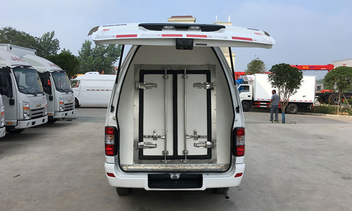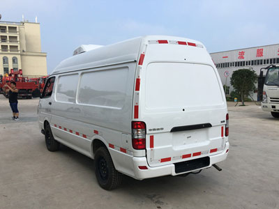 | | 金杯面包疫苗药品冷藏车   主要技术参数 底盘配置:采用金杯面包式冷藏车、绵阳新晨动力V20国五汽油发动机110马力、5档变速箱、动力转向、驾驶室空调、195/70R15轮胎、2920轴距。上蓝牌(一线城市及北京可上牌照),整车尺寸5350×1690×2425(mm),箱体尺寸2900×1380×1450(mm),此车厢体内制冷机组标准配置为-5度或-15度,主要用于用于运输新鲜血液,疫苗,是医院、医药公司、快运公司的最佳选择。厢体基本配置:厢体采用FRP即玻璃钢(特点:质轻而硬、不导电、机械强度高、耐腐蚀),中间采用发泡高密度聚氨酯保温材料。产品重量轻,漏热率(导热系数)低,强度高。箱体具有保温性能好、环保节能、耐腐蚀、质量轻、寿命长、抗老化,耐复杂气候等优点,其保温性能达到国际A级标准。