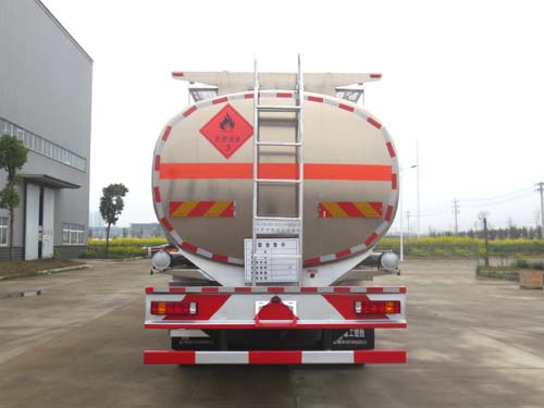 |  | 排放标准: | GB17691-2005国Ⅴ,GB3847-2005 |  | 轴数: | 3 | 前轮距: | 2015,2035(mm) |  | 轴距: | 4275+1400,4575+1400,5775+1400 | 后轮距: | 1830/1830,1850/1850(mm) |  | 轮胎数: | 10 | 轮胎规格: | 295/80R22.5,12R22.5,11.00R20 |  | 燃料种类: | 柴油 | 弹簧片数: | 11/-/-,3/-/- |  | 轴荷: | 7000/19000(二轴组) | 驾驶室乘人数: | 2,3 |  | 整车备注: | 1、该车适用于危险品运输车,运送危险货物车辆类型为:FL型;类项号:3;装配限速装置,限速80km/h。罐体有效容积22.6立方米,罐体外形尺寸(长×宽×高)(mm):7200×2450×1750。罐体上部选装无上走道;文字喷涂位置可变化。2、侧/后防护材料为冷弯型钢Q235,侧防护螺栓连接,后防护焊接,截面尺寸120×50mm,下边缘离地高500mm。3、仅用轴距(mm)4575+1400;仅选用消声器前置、限速装置、前轮盘式制动及子午线轮胎的底盘;安装带有卫星定位功能的行驶记录仪;ABS系统型号为4460046300,生产企业为威伯科汽车控制系统(中国)有限公司.发动机型号与油耗值(L/100km)的对应关系为:MC07.24-50/38.1,MC07.28-50/38.4,MC07.31-50/38.6。 |  | 专用性能: | 本公司改装生产的油罐车均采用国内成熟的原装底盘进行改装,用户也可自带底盘(必须与公告底盘型号一致),我厂提供上装部件的生产改装。油罐车均可设计成化工车。油罐车均可配备电脑加油机。油罐车宽范围的上户吨位选择,以满足用户需求。。 罐体材质:碳钢、不锈钢、钢衬塑、玻璃钢、全塑罐(聚乙烯)。罐型:方圆形、椭圆形、圆形。油罐车罐体内设多道防波隔板。采用高压气体试漏检测,使罐体具有强度高,重心稳,车辆运载安全平稳等特点。油泵:自吸泵、齿轮泵、化工泵、不锈钢泵。油表:单计数、双计数、税控加油机。