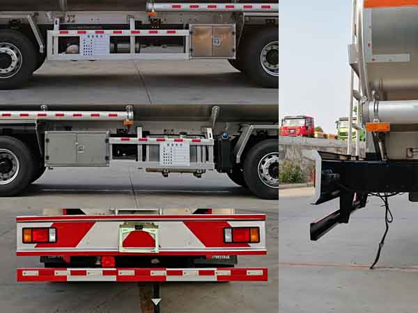 |  | 排放标准: | GB17691-2005国Ⅴ,GB3847-2005 |  | 轴数: | 4 | 前轮距: | 2006/2006,2020/2020,2070/2070(mm) |  | 轴距: | 1800+3900+1400,1800+4200+1400,1800+4600+1400,1800+4800+1400 | 后轮距: | 1850/1850(mm) |  | 轮胎数: | 12 | 轮胎规格: | 11.00-20,11.00R20,12.00-20 18PR,12.00R20 18PR,295/80R22.5,315/80R22.5 18PR,12R22.5 |  | 燃料种类: | 柴油 | 弹簧片数: | 3/3/4,3/3/6,9/9/12,3/3/12,5/5/6 |  | 轴荷: | 6500/6500/18000(二轴组) | 驾驶室乘人数: | 2,3 |  | 整车备注: | 1,该车适用于危险品运输,运送危险货物车辆类型为:FL型;类项号:3;装配限速装置,限速80km/h。运输介质:汽油,密度:700千克/立方米。罐体有效容积28.5立方米,罐体外形尺寸(长×宽×高)(mm):9000×2450×1730。2,侧防护材料为铝合金,螺栓连接;后防护材料为冷弯型钢/Q235,焊接,截面尺寸120×50mm,下边缘离地高500mm。3,随底盘选装驾驶室,仅用轴距(mm)1800+4600+1400;仅选用消声器前置,限速装置,前轮盘式制动及子午线轮胎的底盘;安装带有卫星定位功能的行驶记录仪;ABS型号:ABS/ASR-24V-4S/4M,控制器型号:ABS/ASR-24V-4S/4M,厂家:东科克诺尔商用车制动系统(十堰)有限公司;ABS型号:44600XXXX0,控制器型号:44600XXXX0,厂家:威伯科汽车控制系统(中国)有限公司。发动机与油耗值(L/100km)的对应关系为:F2CCE611C*L/41.8,F2CCE611D*L/41.8。 |  | 专用性能: | 我公司改装生产的油罐车均采用国内成熟的原装底盘进行改装,用户也可自带底盘(必须与公告底盘型号一致),我厂提供上装部件的生产改装。油罐车均可设计成化工车。油罐车均可配备电脑加油机。油罐车宽范围的上户吨位选择,以满足用户需求。。 罐体材质:碳钢、不锈钢、钢衬塑、玻璃钢、全塑罐(聚乙烯)。罐型:方圆形、椭圆形、圆形。油罐车罐体内设多道防波隔板。采用高压气体试漏检测,使罐体具有强度高,重心稳,车辆运载安全平稳等特点。油泵:自吸泵、齿轮泵、化工泵、不锈钢泵。油表:单计数、双计数、税控加油机。