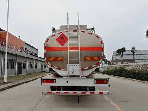 |  | 排放标准: | GB17691-2005国Ⅴ,GB3847-2005 |  | 轴数: | 4 | 前轮距: | 1940/1940,1960/1960,2005/2005,2020/2020(mm) |  | 轴距: | 1850+2700+1350,1850+3200+1350,1850+3800+1350,1850+4000+1350,1850+4350+1350,1850+4650+1350 | 后轮距: | 1860/1860,1900/1860(mm) |  | 轮胎数: | 10 | 轮胎规格: | 11.00R20 18PR,12R22.5 18PR,295/80R22.5 18PR |  | 燃料种类: | 柴油 | 弹簧片数: | 3/3/-/-,4/4/-/-,9/9/-/- |  | 轴荷: | 6750/6750/18500(二轴组) | 驾驶室乘人数: | 2,3 |  | 整车备注: | 1、罐体有效容积31.9立方米,运输介质:汽油,密度:700千克/立方米。罐体外形尺寸(长×宽×高)(mm):9200×2480×1810。该车适用于危险品运输,运送危险货物车辆类型为:FL型。装配限速装置,限速80km/h。类项号:3。罐体上部选装无上走道。工具箱可装在车架左侧或右侧且安装位置可前后变化。仅采用轴距(mm):1850+4650+1350。2、侧/后防护材料为铝合金,连接方式为螺栓连接;后防护截面尺寸120×50mm,下边缘离地高500mm。3、随底盘选装驾驶室;仅选用消声器前置、限速装置、前轮盘式制动及子午线轮胎的底盘;安装带卫星定位功能的行驶记录仪。ABS型号/厂家:3631010-C2000/东科克诺尔商用车制动系统(十堰)有限公司。车辆第三轴为非驱动轴,最大允许轴荷7000kg,发动机与油耗值(L/100km)对应关系为:YC6A270-50, ISL8.9-292E50A/40.7,42。 |  | 专用性能: | 我公司改装生产的油罐车均采用国内成熟的原装底盘进行改装,用户也可自带底盘(必须与公告底盘型号一致),我厂提供上装部件的生产改装。油罐车均可设计成化工车。油罐车均可配备电脑加油机。油罐车宽范围的上户吨位选择,以满足用户需求。。 罐体材质:碳钢、不锈钢、钢衬塑、玻璃钢、全塑罐(聚乙烯)。罐型:方圆形、椭圆形、圆形。油罐车罐体内设多道防波隔板。采用高压气体试漏检测,使罐体具有强度高,重心稳,车辆运载安全平稳等特点。油泵:自吸泵、齿轮泵、化工泵、不锈钢泵。油表:单计数、双计数、税控加油机。