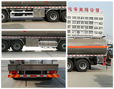 |  | 排放标准: | GB17691-2005国Ⅴ,GB3847-2005 |  | 轴数: | 4 | 前轮距: | 2020/2020,2060/2060,2080/2080(mm) |  | 轴距: | 1950+4500+1350,1950+4500+1300,1800+4660+1350,2100+4350+1350,2100+4350+1300 | 后轮距: | 1860/1860,1874/1874(mm) |  | 轮胎数: | 12 | 轮胎规格: | 10.00-20,10.00R20,11.00-20,11.00R20,295/80R22.5,12R22.5 |  | 燃料种类: | 柴油 | 弹簧片数: | 11/11/13,11/11/10,3/3/4 |  | 轴荷: | 6500/6500/18000(二轴组) | 驾驶室乘人数: | 2,3 |  | 整车备注: | 该车运送危险货物车辆类型为:FL型,介质:汽油,类项号:3,有效容积28.5立方米;罐体外形尺寸(长×宽×高)(mm):9000×2480×1780,随底盘选装驾驶室,该车安装前轮盘式制动和限速装置,限速80km/h. 排气管前置,选用子午线轮胎;安装导静电带,安装具有卫星定位功能的行驶记录仪;ABS型号/企业: ABS-E 4S/4M/ 威伯科汽车控制系统有限公司,侧防后防采用铝合金材质螺栓连接在大梁上.后防护断面尺寸(mm):140×50.后防离地高为500mm.发动机对应油耗值(L/100km):YC6L330-50(42.0),YC6L350-50(42.0)。 |  | 专用性能: | 我公司改装生产的油罐车均采用国内成熟的原装底盘进行改装,用户也可自带底盘(必须与公告底盘型号一致),我厂提供上装部件的生产改装。油罐车均可设计成化工车。油罐车均可配备电脑加油机。油罐车宽范围的上户吨位选择,以满足用户需求。。 罐体材质:碳钢、不锈钢、钢衬塑、玻璃钢、全塑罐(聚乙烯)。罐型:方圆形、椭圆形、圆形。油罐车罐体内设多道防波隔板。采用高压气体试漏检测,使罐体具有强度高,重心稳,车辆运载安全平稳等特点。油泵:自吸泵、齿轮泵、化工泵、不锈钢泵。油表:单计数、双计数、税控加油机。