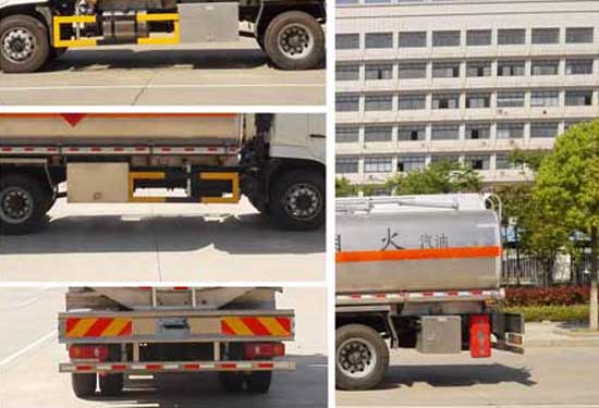 | | 东风天锦16.9方FL型铝合金油罐车   主要技术参数 |  | 产品名称: | 铝合金运油车 | 外型尺寸: | 8600×2500×3300(mm) |  | 底盘型号: | DFH1180BX5V | 货厢尺寸: | ××(mm) |  | 总质量: | 18000(Kg) | 接近/离去角: | (°) |  | 额定质量: | 10670(Kg) | 前悬后悬: | (mm) |  | 整备质量: | 7135(Kg) | 最高车速: | 80(km/h) |  | 发动机 | 发动机生产企业 | 排量(ml) | 功率(kw) |  | ISD210 50 | 东风康明斯发动机有限公司 | 6700 | 155 |  | 排放标准: |  |  | 轴数: | 2 | 前轮距: | 1880,1900,1920,1940(mm) |  | 轴距: | 4500,4700,5000 | 后轮距: | 1800,1860,1820(mm) |  | 轮胎数: | 6 | 轮胎规格: | 10.00R20 18PR,295/80R22.5 |  | 燃料种类: | 柴油 | 弹簧片数: | 7/9+6,8/10+8 |  | 轴荷: | 6500/11500 | 驾驶室乘人数: | 3 |  | 整车备注: | 1,危险货物运输车辆的类型:FL型车辆,2,罐体有效容积16立方米,类项号为3,罐体外形尺寸(长×宽×高)(mm):5800×2300×1580;3,前轴装盘式制动器,排气管前置,仅选用子午胎,装配限速装置,限速80km/h,安装具有卫星定位功能的行驶记录仪,4,随底盘选装驾驶室;5,侧/后防护:材料为铝合金,连接方式:螺栓连接在大梁上,后防护截面尺寸100×50mm,下边缘离地高530mm;6,ABS型号/厂家:3631010-C2000,4460046440/东科克诺尔商用车制动系统(十堰)有限公司, |  | 专用性能: | 本公司改装生产的油罐车均采用国内成熟的原装底盘进行改装,用户也可自带底盘(必须与公告底盘型号一致),我厂提供上装部件的生产改装。油罐车均可设计成化工车。油罐车均可配备电脑加油机。油罐车宽范围的上户吨位选择,以满足用户需求。。 罐体材质:碳钢、不锈钢、钢衬塑、玻璃钢、全塑罐(聚乙烯)。罐型:方圆形、椭圆形、圆形。油罐车罐体内设多道防波隔板。采用高压气体试漏检测,使罐体具有强度高,重心稳,车辆运载安全平稳等特点。油泵:自吸泵、齿轮泵、化工泵、不锈钢泵。油表:单计数、双计数、税控加油机。