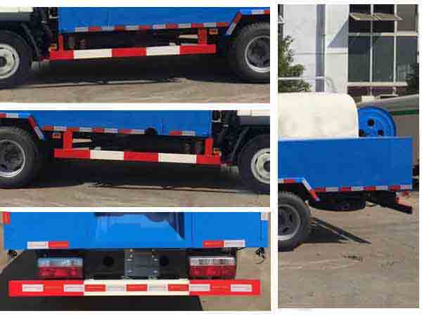 |  | 排放标准: | GB17691-2005国Ⅴ,GB3847-2005 |  | 轴数: | 2 | 前轮距: | 1750,1530(mm) |  | 轴距: | 3300 | 后轮距: | 1650,1540(mm) |  | 轮胎数: | 6 | 轮胎规格: | 7.00R16LT 14PR,7.00-16LT 14PR |  | 燃料种类: | 柴油 | 弹簧片数: | 6/6+5,8/10+8,9/10+8,8/9+5 |  | 轴荷: | 2640/4720 | 驾驶室乘人数: | 3 |  | 整车备注: | 罐体有效容积:3.95立方米.运输介质: 水,密度:1000千克/立方米.罐体为矩圆形外形尺寸(长/长轴/短轴)(mm):2500(实际长3500,其中前部1000用于安装高压水泵用)/1650/1150.该车用于清洗作业,专用装置为:高压水泵及罐体.防护材料:Q235碳钢,连接方式:左右侧面及后下部防护均采用焊接连接,后部防护断面尺寸(mm):100×50,后部防护离地高度(mm):450.ABS型号:J ABS;ABS生产厂家:焦作博瑞克控制技术有限公司. |  | 专用性能: | 高压清洗车也称之为管道疏通车,是通过高压水流产生的强大压力冲开被堵塞的管道。主要组成部分为罐体、高压泵、液压系统等。是在二类原装底盘的基础上加以改装而成,上装部分为罐体,配置高压水泵工作。喷水架清洗宽度2.5m-3.5m,可任意控制,当伸缩喷杆收缩时,可实现双重水流强化清洗,适用于城市道路、广场的清洗和管道疏通、下水道清洗;左、右角喷适用于清洗路缘、护栏隔离带、人行道等。还可加装洒水装置,安装绿化洒水炮、前冲、后洒、侧喷,可进行绿化洒水、喷雾、压尘、高压冲洗路面等,紧急时可用于救火。 |  | 多方位图: |