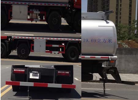 |  | 排放标准: | GB17691-2005国Ⅴ,GB3847-2005 |  | 轴数: | 3 | 前轮距: | 1920/1920,1980/1980(mm) |  | 轴距: | 1850+4350,1950+4250 | 后轮距: | 1860(mm) |  | 轮胎数: | 8 | 轮胎规格: | 11.00R20,11.00R20,295/80R22.5 |  | 燃料种类: | 柴油 | 弹簧片数: | 9/9/10+8 |  | 轴荷: | 6800/6800/11300 | 驾驶室乘人数: | 3 |  | 整车备注: | 1,运输介质:食用油,密度:800千克/立方米. 罐体有效容积:19.69立方米,罐体外形尺寸(长×长轴×短轴)(mm):7400×2350×1580,2,侧/后防护材料为Q235,侧防护螺栓连接,后防护焊接,截面尺寸(mm):50×120,离地高(mm):500.3,该车应装具有卫星定位功能的行驶记录仪,ABS的型号及生产厂家:J ABS/焦作博瑞克控制技术有限公司.发动机/油耗值(L/100km)对应关系为:ISB210 50,YC6JA220-50/37.2,37.4。 |  | 专用性能: | 本公司改装生产的油罐车均采用国内成熟的原装底盘进行改装,用户也可自带底盘(必须与公告底盘型号一致),我厂提供上装部件的生产改装。油罐车均可设计成化工车。油罐车均可配备电脑加油机。油罐车宽范围的上户吨位选择,以满足用户需求。。 罐体材质:碳钢、不锈钢、钢衬塑、玻璃钢、全塑罐(聚乙烯)。罐型:方圆形、椭圆形、圆形。油罐车罐体内设多道防波隔板。采用高压气体试漏检测,使罐体具有强度高,重心稳,车辆运载安全平稳等特点。油泵:自吸泵、齿轮泵、化工泵、不锈钢泵。油表:单计数、双计数、税控加油机。