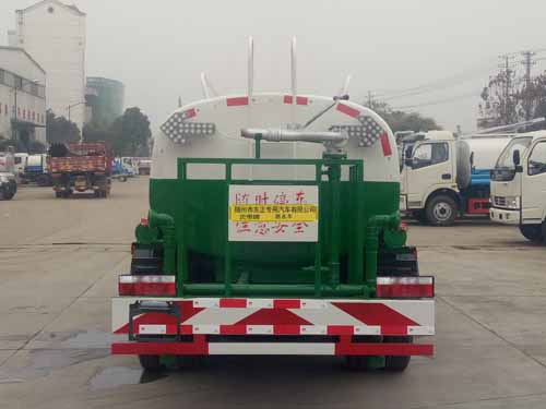 | 蓝牌东风小多利卡1.9方小型洒水车   主要技术参数 底盘配置:东风小多利卡单排驾驶室、蒙沃5档变速箱、3吨后桥、6.50R16钢丝胎、2600轴距、动力转向、空调、离合助力、电动车窗、中控锁、ABS、油刹、可调大灯、刹车自动调整臂,配备4A2-88C50安徽全柴动力股份有限公司88马力国五柴油发动机。上装基本配置:罐体公告容积为1.57立方,实际容积为1.9立方,采用武钢Q235优质国标4mm碳钢板材一次卷压成型,洒水车前冲(喷)后洒,带侧喷,罐体后带工作平台,平台上安装绿化洒水炮,洒水炮可全方位旋转,可连续调成直冲状、大雨、小雨、毛毛雨,带安全护栏,配备大功率专用洒水泵,泵可自吸自排,安装过滤网,带消防接口,可通过消防栓进水,带自流阀,罐体金属漆。
