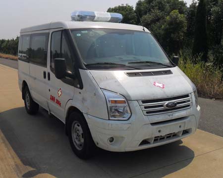| | 江铃新世代全顺(豪华型)救护车   主要技术参数 |  | 产品名称: | 救护车 | 外型尺寸: | 4963×2000×2560,2400,2242(mm) |  | 底盘型号: | JX6500TA-L5  整车  江铃汽车股份有限公司 | 货厢尺寸: | ××(mm) |  | 总质量: | 3550(Kg) | 接近/离去角: | 22/25(°) |  | 额定载客: | 3-9人(含驾驶员) | 前悬后悬: | 933/1097(mm) |  | 整备质量: | 2300(Kg) | 最高车速: | 140(km/h) |  | 发动机 | 发动机生产企业 | 排量(ml) | 功率(kw) |  | DURATORQ4D225H | 江铃汽车股份有限公司 | 2198 | 100 |  | 排放标准: | GB17691-2005国Ⅴ,GB3847-2005 |  | 轴数: | 2 | 前轮距: | 1745(mm) |  | 轴距: | 2933 | 后轮距: | 1700(mm) |  | 轮胎数: | 4 | 轮胎规格: | 215/75R16LT |  | 燃料种类: | 柴油 | 弹簧片数: | -/2 |  | 轴荷: | 1550/2000 | 驾驶室乘人数: | 2 |  | 整车备注: | 装机械踏板或电动踏板,选装普通款前大灯;当车顶选装前额凸台带警灯或前额凸台加装LED屏装警灯时,高度为2400mm;选装换气扇,高度为2560mm;选装低顶驾驶室,高度为2242mm;顶四周选装单个或多个爆闪灯;车辆外观标识及字样可按行业或用户要求喷涂或粘贴;配备医疗器械柜,担架,氧气瓶等救护专用设备;ABS系统生产厂家,型号分别为博世汽车部件(苏州)有限公司,6C11 2M110 A*。 |  | 专用性能: | 我厂生产的救护车主要用于患者急救。内部比较宽敞,使救护人员有足够的空间去往医院的途中对患者进行救护处理,车内可携带大量的绷带和外敷用品,可以帮助止血、清洗伤口、预防感染。车上还带着夹板和支架用来固定病人折断的肢体,并避免病人颈部和脊椎的伤害加重。车上也备有氧气、便携式呼吸机和心脏起搏除颤器等。大多数救护车上还带有病人监护仪,可以在前往急诊室的路上监测患者的脉搏和呼吸。这些检测数据可以通过无线电发送到医院。 |  | 多方位图: |