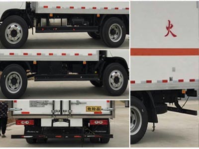 |  | 排放标准: | GB17691-2005国V,GB3847-2005 |  | 轴数: | 2 | 前轮距: | 1710,1740(mm) |  | 轴距: | 3800 | 后轮距: | 1630(mm) |  | 轮胎数: | 6 | 轮胎规格: | 8.25-20 16PR, 8.25R20 16PR, 9.00-20 14PR, 9.00R20 14PR |  | 燃料种类: | 柴油 | 弹簧片数: | 9/11+7 |  | 轴荷: | 4200/7795 | 驾驶室乘人数: | 3 |  | 整车备注: | 该车适用于运输危险品。厢体顶部封闭,不可开启。该车用于运输具有独立容器(瓶)包装的磷,铝粉,锌粉,镁粉及镁合金粉,冰片,硫磺,聚乙醛,三硝基苯,含油废棉,鱼粉.磷化钠(锡),碳(氢,硅,铝)化钙等.运输介质类别和项别号:4.1,4.2,4.3。防护材料:Q235A碳钢,连接方式:左右侧面及后下部防护均采用焊接连接,后部防护断面尺寸(mm):100×50,后部防护离地高度(mm):510。仅采用底盘子午线轮胎和带ABS的底盘,该车前轮安装盘式制动器,前置排气管,装配限速装置,限速80km/h。安装带有卫星定位功能的行驶记录仪。ABS型号:44600XXXX0;ABS生产企业:威伯科汽车控制系统(中国)有限公司。油耗对应关系(L/100km):22.81(ISF3.8s5154)。可选装开侧门。选装后部液压尾板,后部液压尾板收起状态的水平长度是250mm。 |  | 专用性能: | 我厂生产的易燃固体厢式运输车厢体顶部密封,不可开启,厢体两侧可选装不同形式侧开门,选装厢体外蒙皮,选装液压尾板。适用于运输具有独立容器(瓶)包装的磷、铝粉、锌粉、镁粉及镁合金粉、冰片、硫磺、聚乙醛、三硝基苯、含油废棉、鱼粉、磷化钠(锡)、碳(氢、硅、铝)化钙等4类危险物品。 |  | 多方位图: |