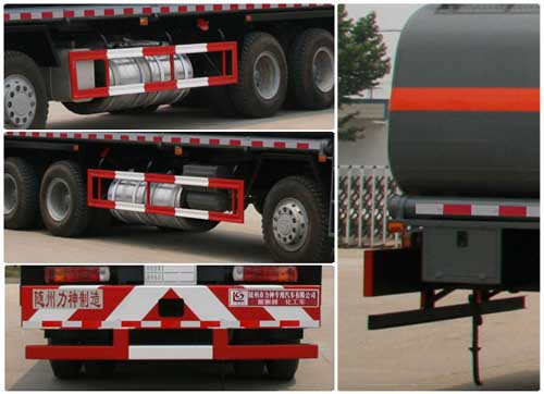 |  | 排放标准: | GB17691-2005国Ⅴ,GB18285-2005,GB11340-2005 |  | 轴数: | 4 | 前轮距: | 2022/2022,2041/2041(mm) |  | 轴距: | 1800+4600+1350,1800+4575+1400 | 后轮距: | 1830/1830(mm) |  | 轮胎数: | 12 | 轮胎规格: | 315/80R22.5 18PR/315/80R22.5 16PR,295/80R22.5,12R22.5,12.00R20 16PR,11.00R20,12.00-20 16PR,11.00-20 |  | 燃料种类: | LNG | 弹簧片数: | 4/4/12,4/4/-,11/11/12,11/11/- |  | 轴荷: | 6500/7000/17500(二轴组) | 驾驶室乘人数: | 2,3 |  | 整车备注: | 罐体有效容积:23.2立方米,介质:原油,乙醇,异丙醇,异丁醛,丙酮,乙醛,甲醛,三乙胺类项号:3,密度分别为:810,800,790,780,780,790,780,730千克/立方米,罐体尺寸:长9000毫米,长轴2250毫米,短轴1550毫米.侧、后防护装置材料材质:Q235B,侧、后防护均用螺栓连接,后部防护装置断面尺寸(宽×高)60×100(mm),后部防护离地高度:540mm.随底盘选装驾驶室.ABS系统型号为4460046300,生产企业为威伯科汽车控制系统(中国)有限公司.安装具有卫星定位功能的行驶记录仪.安装前轮盘式制动器及限速装置,限速78km/h,仅采用11.00R20,12.00R20 16PR,12R22.5,295/80R22.5,315/80R22.5 16PR底盘子午线轮胎.仅选用安装限速装置的发动机T10.34-50和T12.38-50;仅选用排气管前置的底盘。 |  | 专用性能: | 易燃液体罐式运输车采用聚乙烯用大型滚塑机进行整体一次成型,具有无接缝、不渗漏、无毒性、抗老化、抗冲击、耐腐蚀、寿命长等特点,是安全、高效的耐腐蚀运输设备。易燃液体罐式运输车罐体常采用碳钢内衬滚塑或不锈钢罐、铝罐等材质。易燃液体罐式运输车是由二类汽车底盘、化工液体运输车专用罐体、化工泵等部件组成。 东风易燃液体罐式运输车的结构一般是在碳钢内涂防腐涂料,用碳钢内衬塑,用塑料罐体,或铝罐,不锈钢罐,玻璃钢纤维罐等等,都对相对的运输品有防腐作用。铝板和铝合金板,铝板和铝合金板质量轻,可塑性好,便于成型,使用寿命长,是一种理想的罐体材料。但铝板和铝合金板制成的罐体强度较低,承载能力差。所以,多适用于装运航空燃料,浓硝酸,冰硝酸,无水酒精,有机溶剂等化工产品及食品类物品,不宜装运压缩气体,液化气体及易分解的气体。我厂生产的易燃液体罐式运输车有以下优势:1)罐体板材选用:碳钢内衬滚塑或不锈钢板材;2)罐体形状:椭圆形、方圆形、圆形;3)化工泵:选用国内知名企业优质化工液体专用泵;4)功能:可独立或分仓,分装不同的化工品、液态食品;5)内部设置多道全塑防波隔板,全面通过高压气密封检测,罐体强度高,重心稳,车辆运载安全平稳。 |  | 多方位图: |