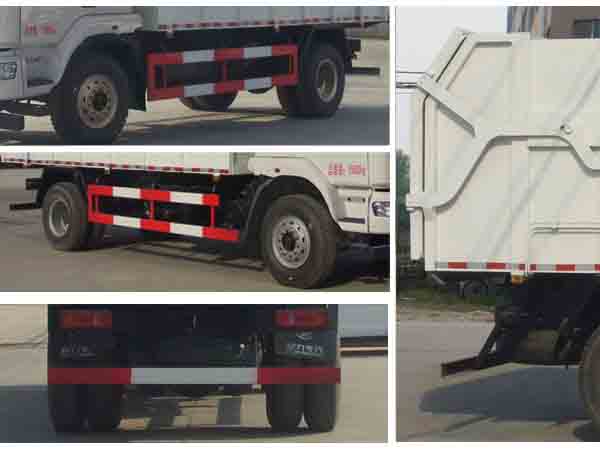 |  | 排放标准: | GB17691-2005国Ⅴ,GB3847-2005 |  | 轴数: | 2 | 前轮距: | 1940,1916(mm) |  | 轴距: | 5100,4500,4200,3800 | 后轮距: | 1860(mm) |  | 轮胎数: | 6 | 轮胎规格: | 9.00-20,9.00R20,10.00-20,10.00R20,11R22.5 |  | 燃料种类: | 柴油 | 弹簧片数: | 11/12+9,2/2+1,3/4+3,2/3+2 |  | 轴荷: | 5800/10000 | 驾驶室乘人数: | 3 |  | 整车备注: | 1、该车长度与轴距对应关系为:8420/5100,7820/4500,7520/4200,7120/3800。2、防护材料:Q235A碳钢,连接方式:左右侧面及后下部防护均采用焊接连接,后下部防护断面尺寸(mm):120×50,后下部防护离地高度(mm):430。3、ABS型号/企业:ABS-E 4S/4M/威伯科汽车控制系统(中国)有限公司。4、仅采用发动机与油耗值对应关系为(L/100km):YC6J180-50/27.02, YC6JA200-50/27.19,ISD210 50/27.04。6、选装上装外观样式。 |  | 专用性能: | 公司专业生产东风福瑞卡垃圾车、东风多利卡垃圾车、东风140垃圾车、东风145垃圾车、东风153垃圾车等,用户可自带底盘,我厂提供上装部件的生产改装。公司生产的垃圾车具有结构简单、操作稳定方便、装卸效率高、机械化程度高、节省人力的优点。广泛适用于环卫、市政、厂矿企业、物业小区、垃圾多而集中的居民区。 压缩式对接垃圾车是由液压控制系统来完成后门的开启和关闭及自卸功能,降低了工人的劳动强度和改善了工作环境。是目前国内广泛釆用的垃圾压缩站垃圾转运方式,可以实现一车多站,大大降低了配备成本和空间。我公司生产的压缩式对接垃圾车专用装置的功能均以汽车发动机为动力,通过液压机构手动或电控、气控来实现。车辆的箱体釆用优质炭钢板全密封焊接结构,具有强度高、重量轻,不产生二次污染等优点。