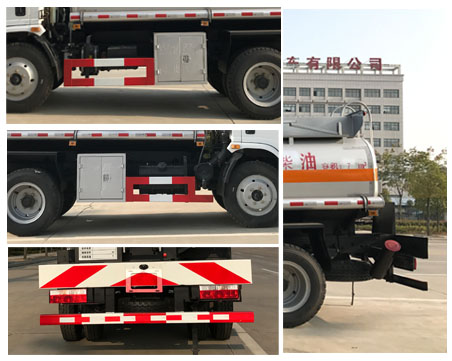 |  | 排放标准: | GB17691-2005国Ⅴ,GB3847-2005 |  | 轴数: | 2 | 前轮距: | 1670(mm) |  | 轴距: | 3360,3800 | 后轮距: | 1650(mm) |  | 轮胎数: | 6 | 轮胎规格: | 8.25R20 |  | 燃料种类: | 柴油 | 弹簧片数: | 9/11+5,9/11+8 |  | 轴荷: | 4595/6900 | 驾驶室乘人数: | 3 |  | 整车备注: | 罐体有效容积:7立方米,车辆类型为FL,类项号为3;罐体外形尺寸(长×宽×高)(mm):4000×1830×1220;侧防后防采用Q235材质焊接在大梁上,后部防护断面尺寸(mm):100×50,后部防护离地高度(mm):430;该底盘排气管前置,安装前盘式制动器,装备限速装置限速80km/h,装子午线轮胎,装导静电带,仅采用3360mm轴距,安装带卫星定位功能的行驶记录仪,ABS系统生产厂家:西安正昌电子有限责任公司,型号:ZQFB-V;发动机与油耗值(L/100km)对应关系: WP3.7Q130E50/24.27,WP4.1Q150E50/24.05。 |  | 专用性能: | 我公司改装生产的油罐车均采用国内成熟的原装底盘进行改装,用户也可自带底盘(必须与公告底盘型号一致),我厂提供上装部件的生产改装。油罐车均可设计成化工车。油罐车均可配备电脑加油机。油罐车宽范围的上户吨位选择,以满足用户需求。。 罐体材质:碳钢、不锈钢、钢衬塑、玻璃钢、全塑罐(聚乙烯)。罐型:方圆形、椭圆形、圆形。油罐车罐体内设多道防波隔板。采用高压气体试漏检测,使罐体具有强度高,重心稳,车辆运载安全平稳等特点。油泵:自吸泵、齿轮泵、化工泵、不锈钢泵。油表:单计数、双计数、税控加油机。