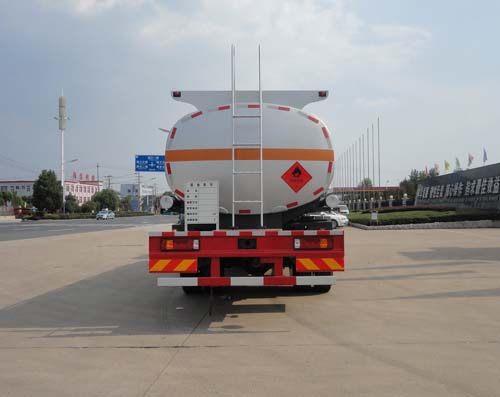 |  | 排放标准: | GB17691-2005国Ⅴ,GB3847-2005 |  | 轴数: | 3 | 前轮距: | 1930/1930,1946/1946,1996/1996,2022/2022,2041/2041(mm) |  | 轴距: | 1800+4800,1800+5600 | 后轮距: | 1830,1860(mm) |  | 轮胎数: | 8 | 轮胎规格: | 11.00R20 18PR,12R22.5 18PR,295/80R22.5 18PR |  | 燃料种类: | 柴油 | 弹簧片数: | 4/4/-,4/4/1+-,4/4/5,4/4/9+6,9/9/9+6,左14右13/左14右13/9+6 |  | 轴荷: | 6500/7000/11500 | 驾驶室乘人数: | 3,2 |  | 整车备注: | 1.运输品名:汽油,煤油,柴油;类项号:3;密度分别为:730,800,830千克/立方米,罐体有效容积:17.9立方米,罐体外形尺寸(长×宽×高)(mm):7950×2228×1486;FL型车辆;随底盘选装驾驶室及视镜外观等;2.ABS和限速装置为底盘自带,ABS系统型号为446 004 6300,生产企业为威伯科汽车控制系统(中国)有限公司;仅选装子午线轮胎,前轮装盘式制动器和轴距(1800+4800)的底盘改装;3.侧防护装置,材料:Q235,连接方式:螺栓连接;后下部防护装置,材料:Q235,连接方式:焊接,断面尺寸(mm):100×30,离地高度:550mm;安装具有卫星定位功能的行驶记录仪;发动机MC05.21-50,MC07.21-50,MC07.24-50,MC07.28-50,MC07.31-50油耗申报值(L/100km)均为36.9;选装侧防护形式、选装后转向轴的挡泥板形式。 |  | 专用性能: | 本公司改装生产的油罐车均采用国内成熟的原装底盘进行改装,用户也可自带底盘(必须与公告底盘型号一致),我厂提供上装部件的生产改装。油罐车均可设计成化工车。油罐车均可配备电脑加油机。油罐车宽范围的上户吨位选择,以满足用户需求。。 罐体材质:碳钢、不锈钢、钢衬塑、玻璃钢、全塑罐(聚乙烯)。罐型:方圆形、椭圆形、圆形。油罐车罐体内设多道防波隔板。采用高压气体试漏检测,使罐体具有强度高,重心稳,车辆运载安全平稳等特点。油泵:自吸泵、齿轮泵、化工泵、不锈钢泵。油表:单计数、双计数、税控加油机。