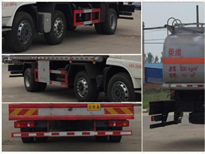 |  | 排放标准: | GB17691-2005国Ⅴ,GB3847-2005 |  | 轴数: | 3 | 前轮距: | 1915/1915,1955/1955(mm) |  | 轴距: | 1800+4100,1800+5000 | 后轮距: | 1860(mm) |  | 轮胎数: | 8 | 轮胎规格: | 10.00-20,10.00R20,295/80R22.5 |  | 燃料种类: | 柴油 | 弹簧片数: | 10/10/10+8,10/10/11+8 |  | 轴荷: | 7000/7000/11000 | 驾驶室乘人数: | 3 |  | 整车备注: | 该车适用于危险品运输,运输介质为柴油,煤油时密度分别为830,800千克/立方米;类项号:3;罐体有效容积:18.2立方米。罐体外形尺寸(长×长轴×短轴)(mm):7300×2150×1500。运输介质为汽油时密度为700千克/立方米;类项号:3;罐体有效容积:21.5立方米。罐体外形尺寸(长×长轴×短轴)(mm):7300×2320×1620。防护材料:Q235A碳钢,连接方式:左右侧面及后部防护均采用焊接连接,后部防护断面尺(mm):110×50, 后部防护离地高度(mm):520。仅采用底盘子午线轮胎和带ABS的底盘,该车前轮安装盘式制动器,前置排气管,装配限速装置,限速80km/h。安装带有卫星定位功能的行驶记录仪。ABS生产厂家:东科克诺尔商用车制动系统(十堰)有限公司;型号:3631010-C2000。车辆颜色可选,文字喷涂位置可变化。油耗对应关系(L/100km):33.7(ISD210 50),33.6(ISD245 50),33.6(ISD270 50),33.7(ISB210 50)。仅采用轴距为1800+4100mm的底盘。 |  | 专用性能: | 本公司改装生产的油罐车均采用国内成熟的原装底盘进行改装,用户也可自带底盘(必须与公告底盘型号一致),我厂提供上装部件的生产改装。油罐车均可设计成化工车。油罐车均可配备电脑加油机。油罐车宽范围的上户吨位选择,以满足用户需求。。 罐体材质:碳钢、不锈钢、钢衬塑、玻璃钢、全塑罐(聚乙烯)。罐型:方圆形、椭圆形、圆形。油罐车罐体内设多道防波隔板。采用高压气体试漏检测,使罐体具有强度高,重心稳,车辆运载安全平稳等特点。油泵:自吸泵、齿轮泵、化工泵、不锈钢泵。油表:单计数、双计数、税控加油机。