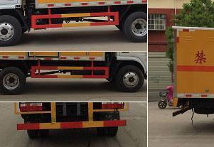 |  | 排放标准: | GB3847-2005,GB17691-2018国Ⅵ |  | 轴数: | 2 | 前轮距: | 1525,1519(mm) |  | 轴距: | 2700,2950,3308 | 后轮距: | 1498,1516(mm) |  | 轮胎数: | 6 | 轮胎规格: | 7.00R16 10PR |  | 燃料种类: | 柴油 | 弹簧片数: | 6/6+5 |  | 轴荷: | 1600/2895 | 驾驶室乘人数: | 2 |  | 整车备注: | 该车适用于运输危险品。危险货物运输车辆的类型为EX/II。厢体顶部封闭,不可开启。选装右侧箱体不开门,选装侧门型式及位置。仅采用底盘子午线轮胎和带ABS的底盘,该车前轮安装盘式制动器,前置排气管,装配限速装置,限速80km/h。安装带有卫星定位功能的行驶记录仪。安全装置为导静电带,用于防止静电。防护材料:Q235B碳钢,连接方式:左右侧面及后下部防护均采用焊接连接,后部防护断面尺寸(mm):100×50,后部防护离地高度(mm):440。整车长/轴距/后悬对应关系为(mm):5510/2700/1755,5915/2950/1910,5995/3308/1632。该车主要用于运输独立容器包装的介质:黑火药,压缩黑火药,电引爆雷管,爆破炸药,点燃导火索,硝胺炸药。运输介质类项号:1.1D,1.1D,1.1B,1.1D,1.4G,1.1D。CY4BK461/CY4BK161/YCY24140-60/D20TCIF1/D25TCIF1/CA4DB1-11E6/CA4DB1-13E6发动机油耗值均为11.4(L/100km).ABS厂家及型号:襄阳东风隆诚机械有限责任公司/ABS/ASR-24V-4S/4M。随底盘选装驾驶室。 |  | 专用性能: | 我公司专业生产东风系列、江铃系列、江淮系列、北汽系列、庆铃系列、解放系列等爆破器材运输车,厢体为双层金属骨架结构,外部为冷扎钢板,内壁采用铝合金板蒙面,夹层为隔热阻燃材料填充。设置对开门,如需安装抗暴容器则增开侧门,侧壁设有防雨功能自然通风窗口,以使厢内外空气流动,厢体内部做防静电处理,厢体底部与厢内前部铺有阻燃导静电胶板,并与底盘等电位连接,通过车辆后端的导静电装置与大地相连,可防止静电火花的产生和车辆静电及时释放,提高车辆的安全性。厢体内部前面和侧面装有固定拉环,与捆绑带使用捆绑货物以避免移动确保安全。 |  | 多方位图: |