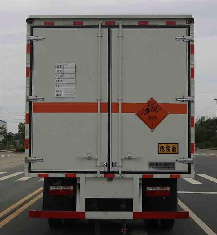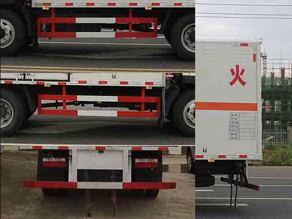 | | 福田厢长5.19-5.59米爆破器材运输车    主要技术参数 |  | 产品名称: | 爆破器材运输车 | 外型尺寸: | 7240,7640×2500,2530×3460(mm) |  | 底盘型号: | BJ1124VKJFA-01 | 货厢尺寸: | 5190,5590×2390×2200(mm) |  | 总质量: | 11995(Kg) | 接近/离去角: | 17/13(°) |  | 额定质量: | 6330(Kg) | 前悬后悬: | 1230/2210(mm) |  | 整备质量: | 5470(Kg) | 最高车速: | 80(km/h) |  | 发动机 | 发动机生产企业 | 排量(ml) | 功率(kw) |  | WP4.1NQ190E61 | 潍柴动力股份有限公司 | 4088 | 140/190 |  | 排放标准: | GB3847-2005,GB17691-2018国Ⅵ |  | 轴数: | 2 | 前轮距: | 1775,1795,1805(mm) |  | 轴距: | 3800,4200 | 后轮距: | 1800,1815(mm) |  | 轮胎数: | 6 | 轮胎规格: | 8.25R20 16PR,9.00R20 16PR,10R22.5 16PR |  | 燃料种类: | 柴油 | 弹簧片数: | 8/10+6,4/10+6,10/12+9 |  | 轴荷: | 4165/7830 | 驾驶室乘人数: | 3 |  | 整车备注: | 1、厢体顶部封闭,不可开启;2、选装侧门型式及位置,选装百叶窗;3、选装侧门对应外形尺寸宽度2530mm,不带侧门对应宽度2500mm;4、排气管前置.只装用子午线轮胎,前轮盘式制动器.ABS型号为CM4XL-4S/4M,生产厂家为广州瑞立科密汽车电子股份有限公司,该车安装带有卫星定位功能的行驶记录仪;5、该车用于运输具有独立容器(瓶)包装的:黑火药,压缩黑火药,电引爆雷管,爆破炸药,点燃导火索,类项号:1.1D,1.1D,1.1B,1.1D,1.4G;该车为危险货物运输车,车辆类型EX/Ⅱ型;6、防护装置材料:侧面防护及后下部防护装置材料材质:冷弯型钢/Q235,连接方式:焊接,后下部防护装置截面尺寸100mm×60mm,离地高度480mm;7、WP4.1NQ190E61发动机油耗值为19.65L/100km;8、装限速装置,限速80km/h。 |  | 专用性能: | 我公司专业生产东风系列、江铃系列、江淮系列、北汽系列、庆铃系列、解放系列等爆破器材运输车,厢体为双层金属骨架结构,外部为冷扎钢板,内壁采用铝合金板蒙面,夹层为隔热阻燃材料填充。设置对开门,如需安装抗暴容器则增开侧门,侧壁设有防雨功能自然通风窗口,以使厢内外空气流动,厢体内部做防静电处理,厢体底部与厢内前部铺有阻燃导静电胶板,并与底盘等电位连接,通过车辆后端的导静电装置与大地相连,可防止静电火花的产生和车辆静电及时释放,提高车辆的安全性。厢体内部前面和侧面装有固定拉环,与捆绑带使用捆绑货物以避免移动确保安全。 |  | 多方位图: |