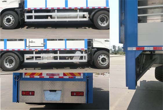 |  | 排放标准: | GB3847-2005,GB17691-2018国Ⅵ |  | 轴数: | 2 | 前轮距: | 1876,1896,1920,1950,1914,1934,1980,2000,1815(mm) |  | 轴距: | 3800,3950,4200,4500,4700,5000,5300,5800,5600 | 后轮距: | 1820,1860,1800(mm) |  | 轮胎数: | 6 | 轮胎规格: | 10.00R20 18PR,275/80R22.5 18PR |  | 燃料种类: | 柴油 | 弹簧片数: | 7/9+6,8/10+8,8/9+6,11/10+8 |  | 轴荷: | 6500/11500 | 驾驶室乘人数: | 2,3 |  | 整车备注: | 随底盘选装驾驶室,选装后部无液压尾板型式,选装侧面无开门结构,选装后门样式,选装厢体前端安装清洗水箱,选装不同结构的液压尾板,选装侧门安装位置,选装不同型式的仓笼结构。侧防护采用冷弯型钢/Q235-B,选装铝合金材质的侧防护,螺栓连接;后防护采用冷弯型钢/Q235-B,螺栓连接,后防护截面高度尺寸120mm,截面宽度尺寸50mm,下边缘离地高度500mm。ABS型号/生产厂家:3631010-C2000/东科克诺尔商用车制动系统(十堰)有限公司,ABS 8/东科克诺尔商用车制动系统(十堰)有限公司, 4460046450/威伯科汽车控制系统(中国)有限公司。安装具有卫星定位装置的行驶记录仪。后部液压尾部收起状态时离车辆最后端距离250mm。发动机型号/油耗申报值对应关系为:D4.5NS6B190/24.4,D6.7NS6B230/23.7,DDi50E190-60/23.9,B6.2NS6B210/23.8,B6.2NS6B230/23.8。车长/轴距对应关系:8600/4700,9000/4700,9000/5000。 |  | 专用性能: | 我公司专业生产小猪崽运输车,采用全铝合金型材制作,重量轻、强度高、防腐蚀性强,每层3个栏位共9个栏位,每层高825mm,装载面积为66.07平方,三层可拉小猪崽1050头,每层中部栏板可翻起,方便人员进出、装卸、清洗,厢体顶部安装保温隔热板,有效避免高温传导,控制厢体温度,车厢两边设有封板系统,独立开关,一般在空车和空气极端恶劣情况下关闭,尾板升降灵活,装猪提升到指定层,提高了装载效率,车厢内每层都装有射灯,方便夜间作业,另可选装风扇系统(安装在车厢两侧,每个栏位一个风扇,保证车厢内部空气流畅)、饮水系统(每个栏位配置两个饮水嘴,水箱容积220L)、喷淋系统(每个栏位配置两个喷头,人工控制,在厢内温度高时进行喷淋降温,效果明显)、加热系统(加热器有温控感应,温度过高时加热器停止工作)、监控系统(有视频监控和温度报警装置,通过视频监控,在驾驶室内可实时观察车厢内每层猪的情况,通过温度报警装置,可在驾驶室内操作对车厢内的温度进行调整),价格实惠,外型美观,质量可靠,畜禽运输车的种类有很多,我厂将会为您提供全方位的解决方案。也可以您的实际要求改装,欢迎广大用户来电咨询订购! |  | 多方位图: |