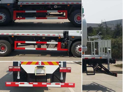 |  | 排放标准: | GB3847-2005,GB17691-2018国Ⅵ |  | 轴数: | 2 | 前轮距: | 1862,1933,1949(mm) |  | 轴距: | 3950,4500,4700,5000,5300,5600 | 后轮距: | 1806,1865(mm) |  | 轮胎数: | 6 | 轮胎规格: | 9.00R20,10.00R20 |  | 燃料种类: | 柴油 | 弹簧片数: | 8/10+7 |  | 轴荷: | 5600/10600 | 驾驶室乘人数: | 2,3 |  | 整车备注: | 1、专用装置:罐体及水泵,主要用于路面洒水及园林绿化。该车仅选用3950mm和4500mm轴距底盘。介质为丙酮水溶液,密度950千克/立方米.罐体有效容积10.39立方米.整车长/轴距/前悬/后悬(mm)对应关系为7750/3950/1260/2540;8660/4500/1260/2900,轴距/罐体外形尺寸(长×长轴×短轴)(mm)对应关系为: 3950/4200×2350×1450;4500/5000×2200×1400。2、侧,后防护装置材料均为Q235,侧防护螺栓联接,后防护焊接,截面尺寸为120×50mm,离地高度为460mm。3、选装后部喷洒装置。安装具有卫星定位功能的行驶记录仪,ABS系统生产厂家,型号 :焦作博瑞克控制技术有限公司,J ABS。 |  | 专用性能: | 我公司专业生产东风、福田、解放、江淮、豪沃、大运、跃进、凯马等系列各类洒水车、多功能洒水车、消防洒水车、园林绿化洒水车、环卫洒水车。用户可自带底盘,我厂提供上装部件的生产改装。 洒水车前冲(喷)后洒,带侧喷,罐体后带工作平台,平台上安装绿化洒水炮,洒水炮可全方位旋转,可连续调成直冲状、大雨、小雨、毛毛雨,带安全护栏,配备大功率专用洒水泵,泵可自吸自排,安装过滤网,带消防接口,可通过消防栓进水,带自流阀,随车选装20米绿化卷盘,可喷洒农药,罐体金属漆。