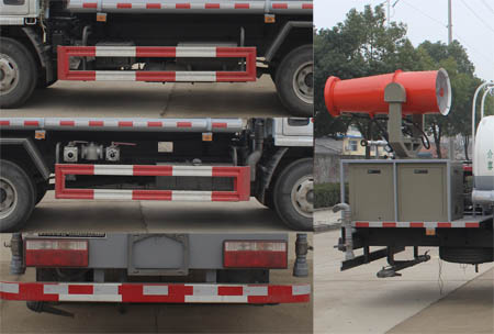 |  | 排放标准: | GB3847-2005,GB17691-2018国Ⅵ |  | 轴数: | 2 | 前轮距: | 1525,1519(mm) |  | 轴距: | 2700,2950,3308 | 后轮距: | 1498,1516(mm) |  | 轮胎数: | 6 | 轮胎规格: | 7.00R16 |  | 燃料种类: | 柴油 | 弹簧片数: | 6/6+5 |  | 轴荷: | 2640/4720 | 驾驶室乘人数: | 2 |  | 整车备注: | 该车用途为抑尘降霾.主要装置为水罐,泵与风机.随底盘选装前面罩,前保险杠,前组合灯具.选装不同风机样式,选装旋臂样式.侧/后防护材料为Q235B,侧、后防护与车架焊接连接.后部防护装置断面尺寸(宽×高)50×100(mm),后部防护离地高度:430mm. ABS型号/厂家:ABS/ASR-12V-4S/4M/襄阳东风隆诚机械有限责任公司。 |  | 专用性能: | 我公司生产的抑尘车主要是由摆臂式喷洒装置、储液罐、自行运载车辆及控制系统组成。同时具备洒水车功能,在喷洒作业时可实现360度旋转,后平台高炮可同时进行旋转,并可电子遥控操作。主要用于铁路煤炭运输煤扬尘污染防治,也可广泛用于其它散装物料运输过程防扬尘污染以及渣料场、储煤场、建筑工地、汽车运煤扬尘、固沙、钢铁建材、水泥、企业各种露天料场生态护坡等方面。 |  | 多方位图: |