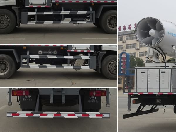 |  | 排放标准: | GB3847-2005,GB17691-2018国Ⅵ |  | 轴数: | 2 | 前轮距: | 1800,1860,1910,1940,1965,1985(mm) |  | 轴距: | 3950,4500,4700,5100 | 后轮距: | 1700,1750,1800,1860,1880(mm) |  | 轮胎数: | 6 | 轮胎规格: | 10.00-20 18PR,10.00R20 18PR,275/80R22.5 18PR |  | 燃料种类: | 柴油 | 弹簧片数: | 8/10+8,11/11+10 |  | 轴荷: | 6500/11500 | 驾驶室乘人数: | 3,2 |  | 整车备注: | 仅采用4500mm轴距;主要专用装置有喷雾机,用于城市抑尘;装备ABS,ABS生产厂家:东科克诺尔商用车制动系统(十堰)有限公司, 浙江万安科技股份有限公司;型号:3631010-C2000, VIE ABS-Ⅱ.侧面防护装置材料材质:Q235,连接方式:螺栓连接.后下部防护装置材料材质:Q235,连接方式:焊接,断面尺寸(宽×高):50×120(mm),离地高度:450mm。 |  | 专用性能: | 我公司生产的抑尘车主要是由摆臂式喷洒装置、储液罐、自行运载车辆及控制系统组成。同时具备洒水车功能,在喷洒作业时可实现360度旋转,后平台高炮可同时进行旋转,并可电子遥控操作。主要用于铁路煤炭运输煤扬尘污染防治,也可广泛用于其它散装物料运输过程防扬尘污染以及渣料场、储煤场、建筑工地、汽车运煤扬尘、固沙、钢铁建材、水泥、企业各种露天料场生态护坡等方面。 |  | 多方位图: |