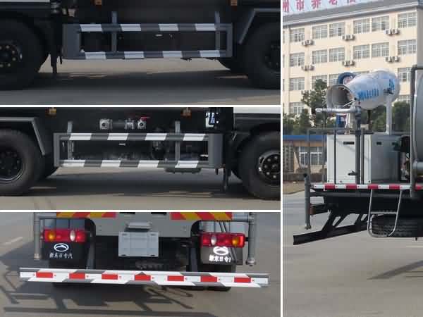 |  | 排放标准: | GB3847-2005,GB17691-2018国Ⅵ |  | 轴数: | 2 | 前轮距: | 1810,1880,1940(mm) |  | 轴距: | 3800,3950,4200,4500,4700,5100 | 后轮距: | 1800,1820,1860(mm) |  | 轮胎数: | 6 | 轮胎规格: | 10.00R20 18PR,275/80R22.5 18PR,9.00R20 16PR |  | 燃料种类: | 柴油 | 弹簧片数: | 8/10+7,8/10+8 |  | 轴荷: | 5600/10400 | 驾驶室乘人数: | 3,2 |  | 整车备注: | 随底盘选装驾驶室,整车长/前悬/轴距/后悬对应关系(mm)为:7800/1300/3950/2550,7700/1200/3950/2550,8350/1300/4500/2550,8250/1200/4500/2550;仅采用(mm)3950,4500轴距;主要专用装置有喷雾机,用于城市抑尘;装备ABS,型号/生产厂家:3631010-C2000/东科克诺尔商用车制动系统(十堰)有限公司,侧面防护及后下部防护装置材料材质:Q235,连接方式:焊接;后下部防护装置断面尺寸(宽×高)(mm):50×120,离地高度480mm。 |  | 专用性能: | 我公司生产的抑尘车主要是由摆臂式喷洒装置、储液罐、自行运载车辆及控制系统组成。同时具备洒水车功能,在喷洒作业时可实现360度旋转,后平台高炮可同时进行旋转,并可电子遥控操作。主要用于铁路煤炭运输煤扬尘污染防治,也可广泛用于其它散装物料运输过程防扬尘污染以及渣料场、储煤场、建筑工地、汽车运煤扬尘、固沙、钢铁建材、水泥、企业各种露天料场生态护坡等方面。 |  | 多方位图: |