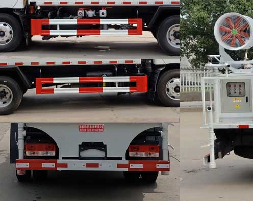 |  | 排放标准: | GB3847-2005,GB17691-2018国Ⅵ |  | 轴数: | 2 | 前轮距: | 1715(mm) |  | 轴距: | 3360 | 后轮距: | 1590,1800(mm) |  | 轮胎数: | 6 | 轮胎规格: | 7.00R16LT 8PR,7.50R16LT 8PR |  | 燃料种类: | 柴油 | 弹簧片数: | 3/6+6 |  | 轴荷: | 1800/2695 | 驾驶室乘人数: | 3 |  | 整车备注: | 选装驾驶室;选装箱体两侧卷帘门结构和两侧不开窗结构;侧防护材料Q235B,螺栓连接;后防护材料Q235B,焊接连接,后部防护断面尺寸(mm):120×50,离地高度(mm):400;ABS系统控制方式为4S/4M,ABS型号为CM4XL-4S/4M,生产厂家为广州瑞立科密汽车电子股份有限公司;该车主要装置是水箱和喷雾机,用于降低空气中的灰尘,雾霾等现象。 |  | 专用性能: | 我公司生产的抑尘车主要是由摆臂式喷洒装置、储液罐、自行运载车辆及控制系统组成。同时具备洒水车功能,在喷洒作业时可实现360度旋转,后平台高炮可同时进行旋转,并可电子遥控操作。主要用于铁路煤炭运输煤扬尘污染防治,也可广泛用于其它散装物料运输过程防扬尘污染以及渣料场、储煤场、建筑工地、汽车运煤扬尘、固沙、钢铁建材、水泥、企业各种露天料场生态护坡等方面。 |  | 多方位图: |