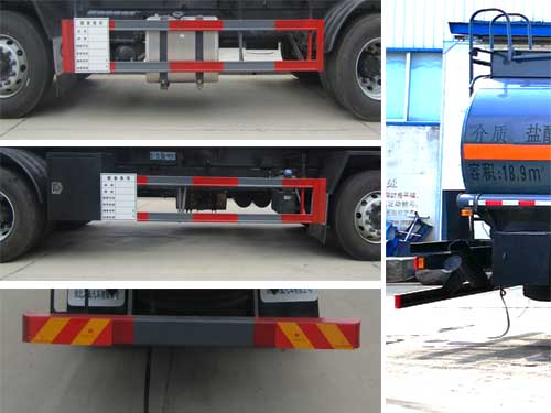| | 东风天龙前四后八18.9方盐酸腐蚀性物品罐式运输车    主要技术参数 |  | 产品名称: | 腐蚀性物品罐式运输车 | 外型尺寸: | 11700×2550×3600,3880(mm) |  | 底盘型号: | DFH1320D2 | 货厢尺寸: | ××(mm) |  | 总质量: | 32000(Kg) | 接近/离去角: | 22/12(°) |  | 额定质量: | 18540,18605(Kg) | 前悬后悬: | 1480/2375(mm) |  | 整备质量: | 13265(Kg) | 最高车速: | 80(km/h) |  | 发动机 | 发动机生产企业 | 排量(ml) | 功率(kw) |  | DDi75E350-60 | 东风商用车有限公司 | 7500 | 257/350 |  | 排放标准: | GB3847-2005,GB17691-2018国Ⅵ |  | 轴数: | 4 | 前轮距: | 2030/2030(mm) |  | 轴距: | 1995+4500+1350 | 后轮距: | 1860/1860,1880/1880(mm) |  | 轮胎数: | 12 | 轮胎规格: | 295/80R22.5 18PR |  | 燃料种类: | 柴油 | 弹簧片数: | 3/3/-/- |  | 轴荷: | 6500/6500/19000(二轴组) | 驾驶室乘人数: | 3,2 |  | 整车备注: | 备注:该车适用于危险品运输,罐体有效容积18.9立方米,危险品车辆类型:AT型车辆,类项号:8;罐体外形尺寸(含封头):罐体长8600mm×直径1800mm;防护材质均采用Q235,护连接方式都为螺栓连接;后防护断面尺寸(mm):90×130,后防离地高为460mm.ABS型号/生产厂家:ABS 8/东科克诺尔商用车制动系统(十堰)有限公司.随底盘选装平顶驾驶室;选装驾驶室前面罩;高顶驾驶室顶部气喇叭为选装件;驾驶室前角扰流板为选装件;选装罐体顶部走道;仅采用底盘子午线轮胎.排气管前置;前轴装备盘式制动器;装备限速装置,限速80km/h;安装具有卫星定位功能的行驶记录仪;安装限速装置,限速80km/h;发动机型号及油耗值(L/100km)为:DDi75E350-60 (38.1);该车后轴为采用空气悬架;转向轮安装轮胎防爆应急防护装置。 |  | 专用性能: | 我厂设计生产的腐蚀性物品罐式运输车由二类汽车底盘、专用罐体、化工泵等部件组成,罐体材质可选用:碳钢内衬滚塑或不锈钢板材等。罐体型状:椭圆形、方圆形、圆形。罐体采用先进的自动卷筒工艺一次性成型,完全按照国家公告生产、采用全自动焊接技术、使罐体无渗漏。半成品罐体首次探伤、之后安装罐体其余结构。化工泵:选用国内知名企业优质化工液体专用泵。功能:可独立或分仓,分装不同的化工品、液态食品。内部设置多道全塑防波隔板。全面通过高压气密性检测,罐体强度高,重心稳,车辆运载安全平稳。 |  | 多方位图: |
