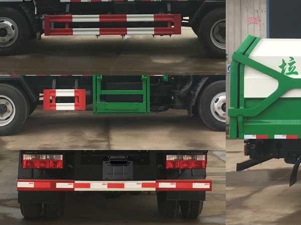 |  | 排放标准: | GB3847-2005,GB17691-2018国Ⅵ |  | 轴数: | 2 | 前轮距: | 1525,1519(mm) |  | 轴距: | 2700,2950,3308 | 后轮距: | 1498,1516(mm) |  | 轮胎数: | 6 | 轮胎规格: | 7.00R16 |  | 燃料种类: | 柴油 | 弹簧片数: | 6/6+5 |  | 轴荷: | 2640/4720 | 驾驶室乘人数: | 2 |  | 整车备注: | 该车装有提升机构、垃圾桶,可自行将垃圾装入转运倾卸.随底盘选装前面罩,前保险杠,前组合灯具.选装提升机构及后锁紧样式.侧后防护采用Q235材质焊接连接,后部防护断面尺寸(mm):100×50,后部防护离地高度(mm):400.ABS型号/厂家:ABS/ASR-12V-4S/4M/襄阳东风隆诚机械有限责任公司.发动机型号D25TCIE1,YCY24140-60,CA4DB1-11E6,ZD30D16-6N,CY4BK461,CY4BK161对应油耗值为17.3,17.3,17.3,17.3,17.3,17.3(L/100km)。 |  | 专用性能: | 我公司专业生产东风福瑞卡垃圾车、东风多利卡垃圾车、东风140垃圾车、东风145垃圾车、东风153垃圾车等,用户可自带底盘,我厂提供上装部件的生产改装。公司生产的垃圾车具有结构简单、操作稳定方便、装卸效率高、机械化程度高、节省人力的优点。广泛适用于环卫、市政、厂矿企业、物业小区、垃圾多而集中的居民区。 自装卸式垃圾车又叫挂桶式垃圾车或桶装垃圾运输车,是一种与垃圾压缩中转站配套使用的环卫专用车辆,主要用于环卫部门进行生活垃圾车收集,大型工矿企业垃圾车清运等。自装卸式垃圾车是由密封式垃圾厢、液压系统、操作系统组成,能配几十个垃圾桶,实现一车与多个垃圾桶联合作业,厢体上的液压升降装置可将垃圾桶吊上、放下,上下升降,上下一次工作循环时间为50S,密封式厢体环保卫生,可避免二次污染。其自装式的挂桶装置可直接将路边的垃圾桶挂在上面用提升机直接到在垃圾箱体里面省去了装垃圾的麻烦。我公司生产的自装卸式垃圾车具有整体结构设计合理紧凑;装卸垃圾自动化;使用效率高,厢体采用轻量化设计、运载量大、封闭性能好;安全、节能、环保等优点明显。是一种安全、节能、环保、高效的新型环卫专用车。